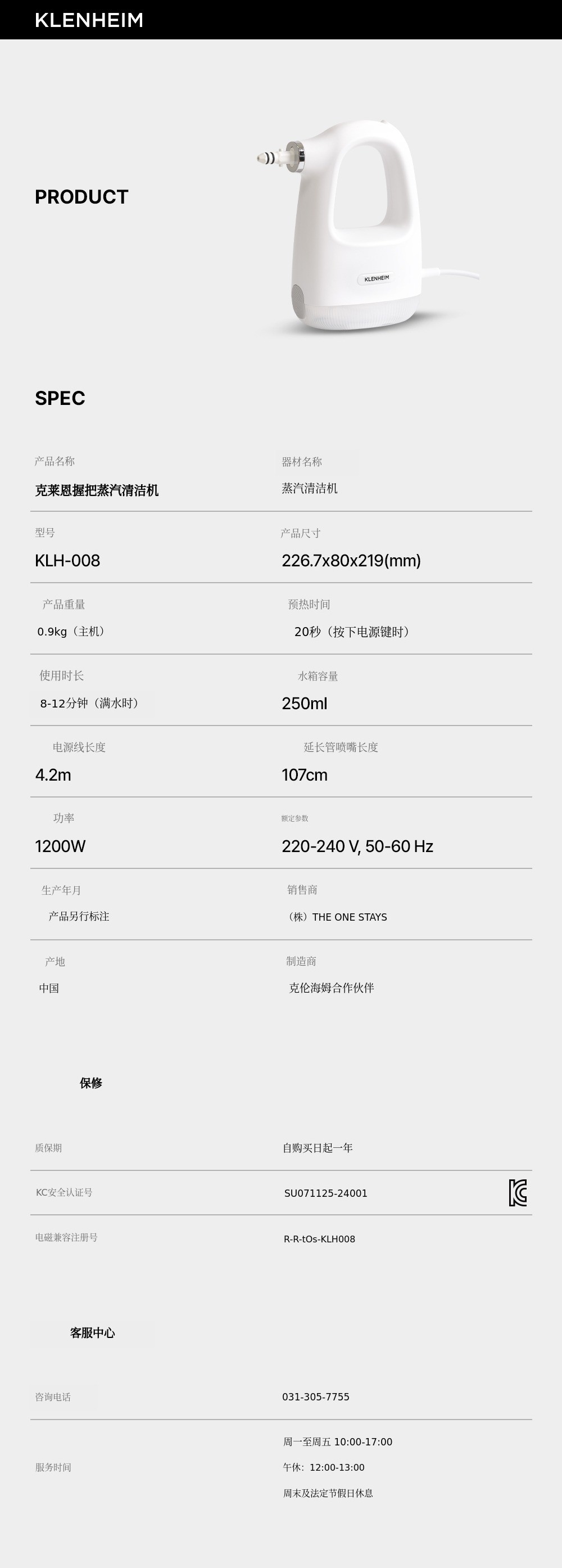 克莱恩海姆 Gripshot 蒸汽清洁机。