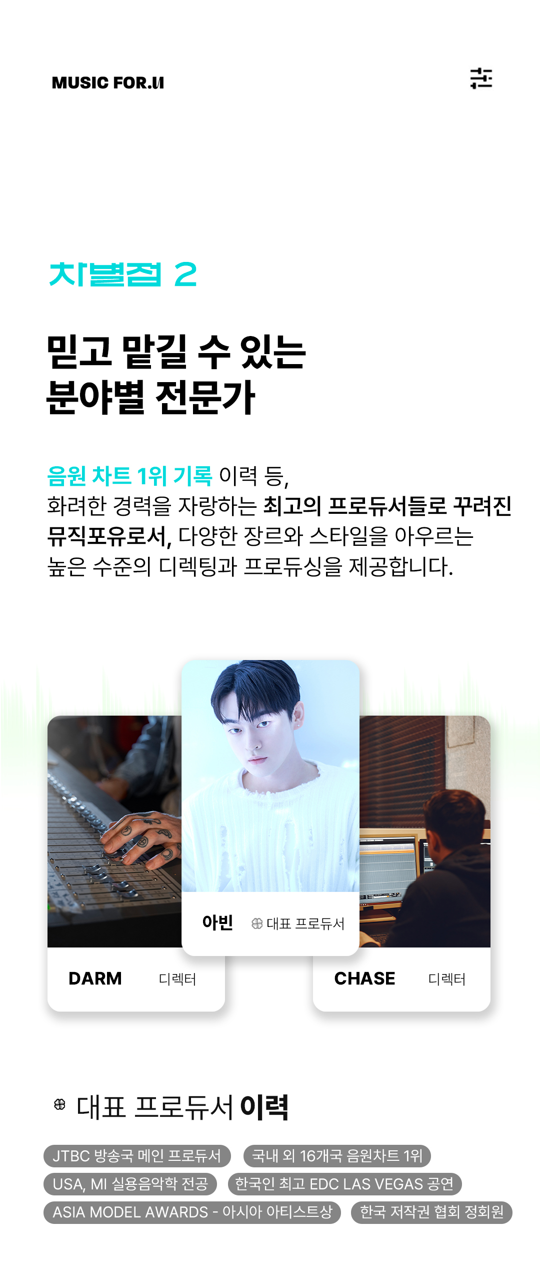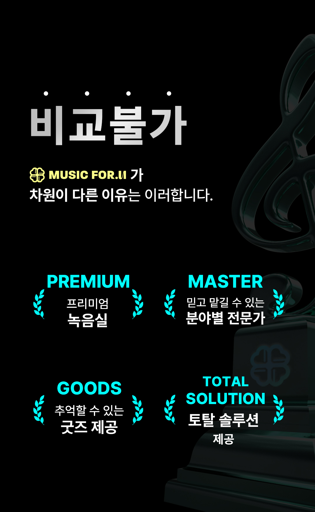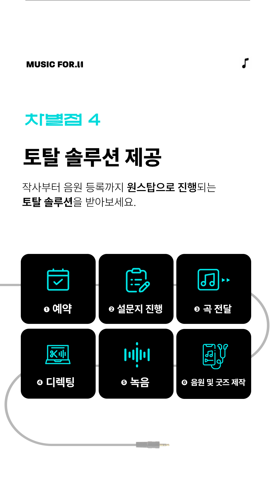 저와 뮤직포유 팀은 항상 고객의 목소리에 귀 기울이고, 그 감정을 깊이 이해하여 최고의 음악을 제작하는 데 전념하고 있습니다.
