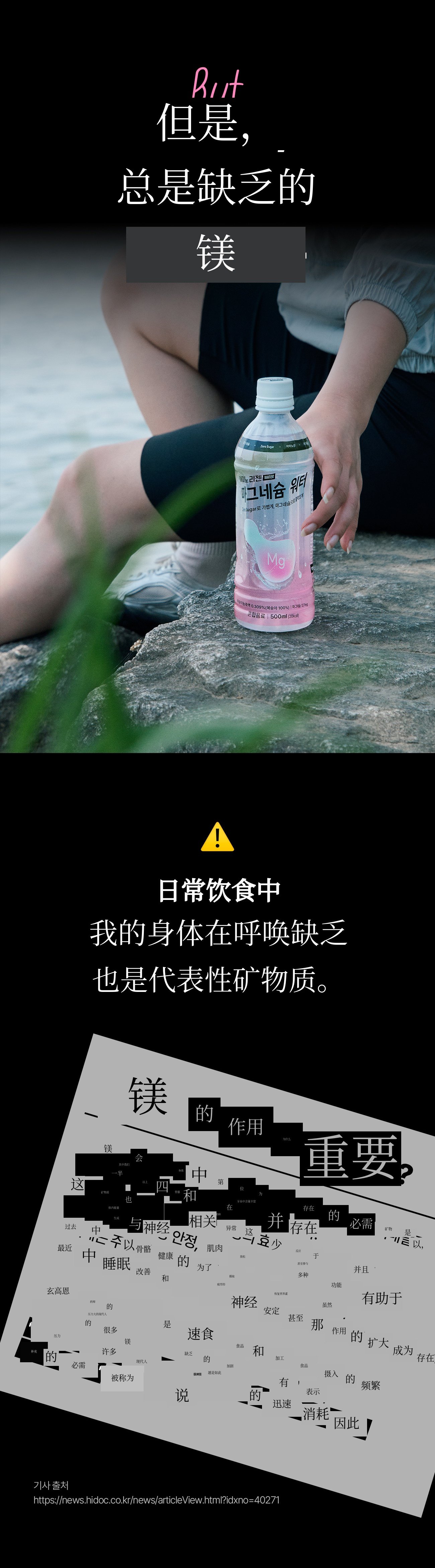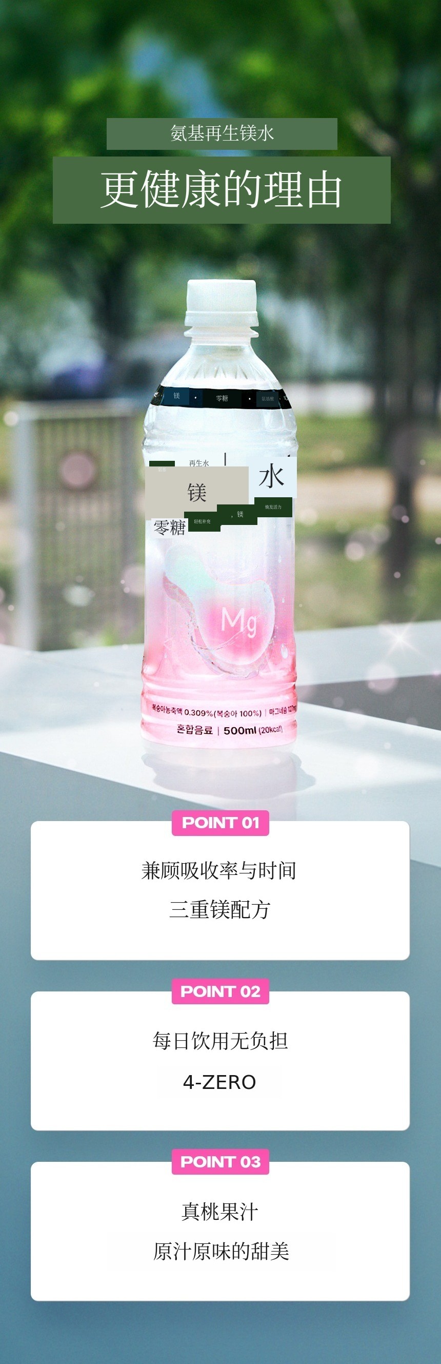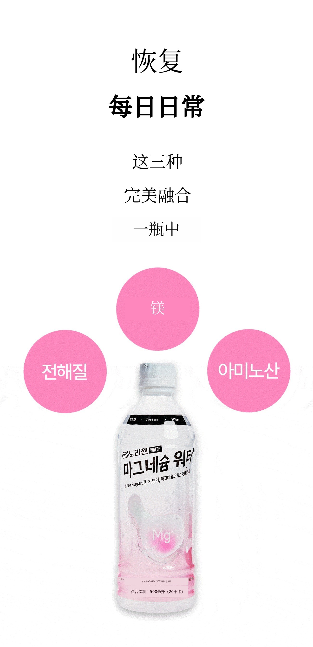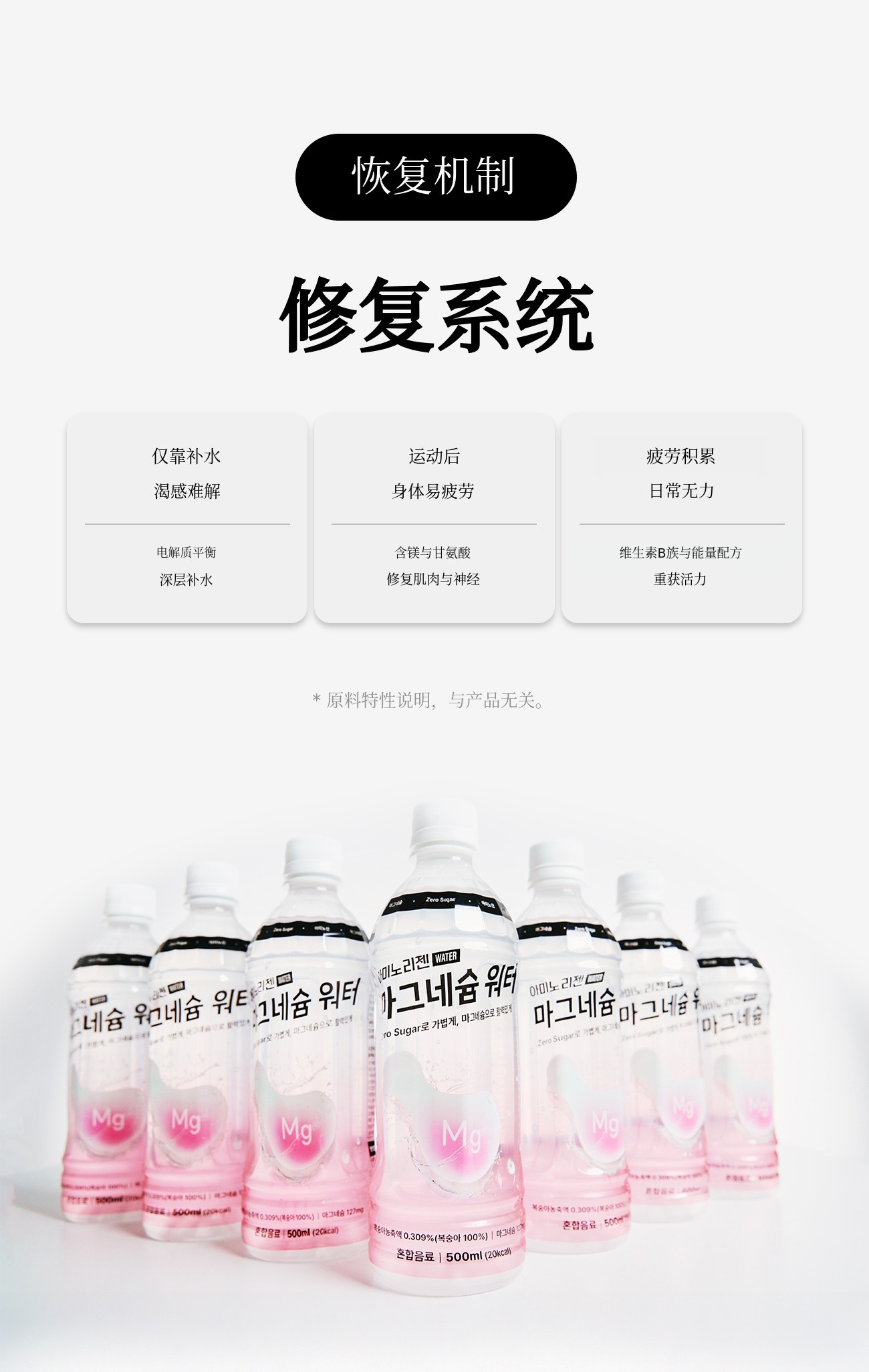 如果说以往的镁产品以药片、粉末和沉重的功能性为主,镁水则是一款符合现代人生活方式的“饮品型健康产品”。我们策划这款产品,是为了让其在睡眠、压力、运动后疲劳恢复等所有需要恢复的时刻都能自然融入您的生活。