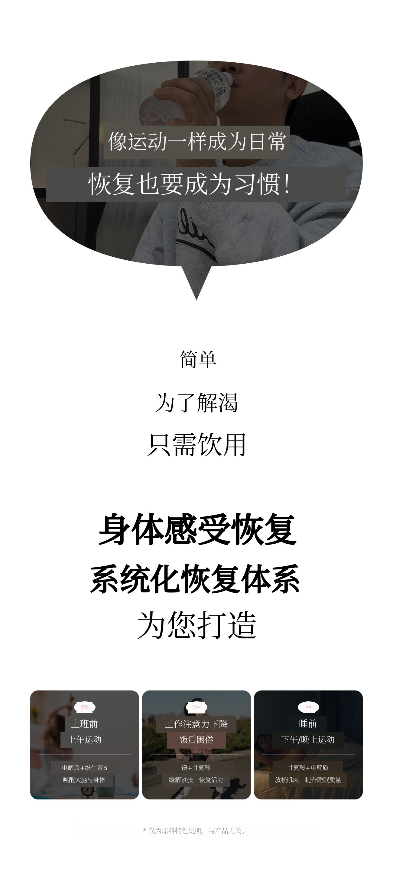 不仅仅是补充,更是根据恢复为中心的功能性目的,提供相应的摄取体验。