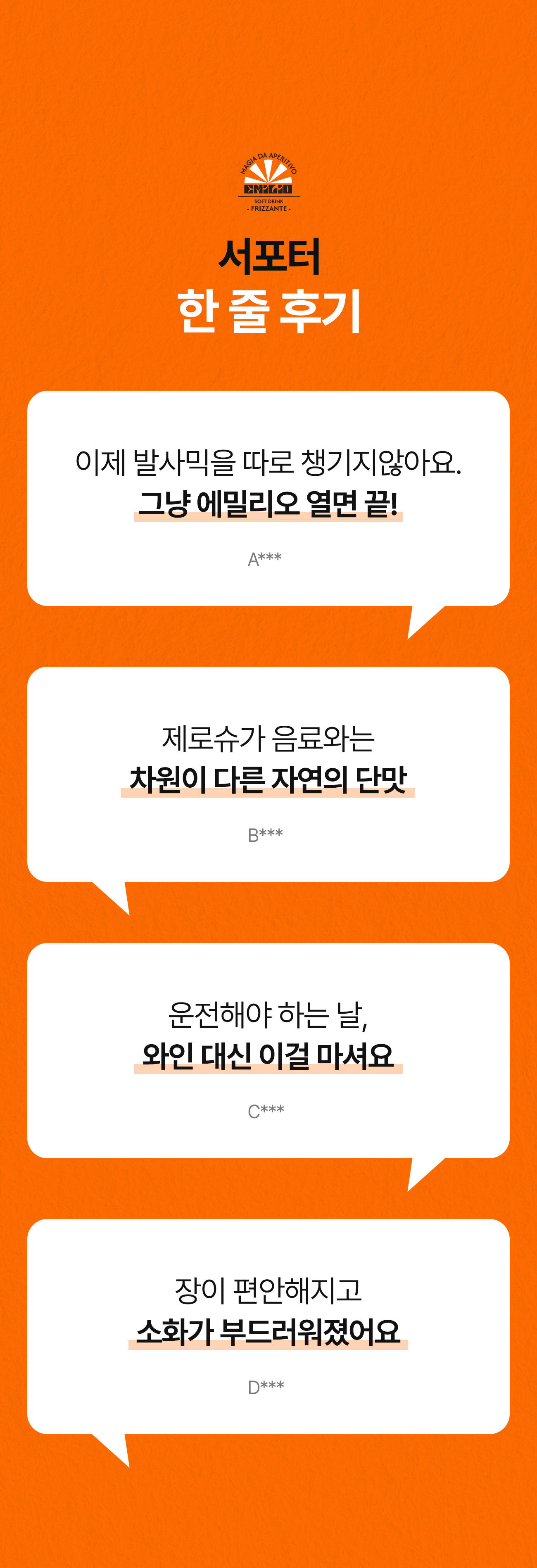 이번 프리오더를 통해 한국에 처음 소개된 논알콜 무설탕 발사믹음료 에밀리오에 대한 서포터님들의 다양한 피드백과 평가를 받고