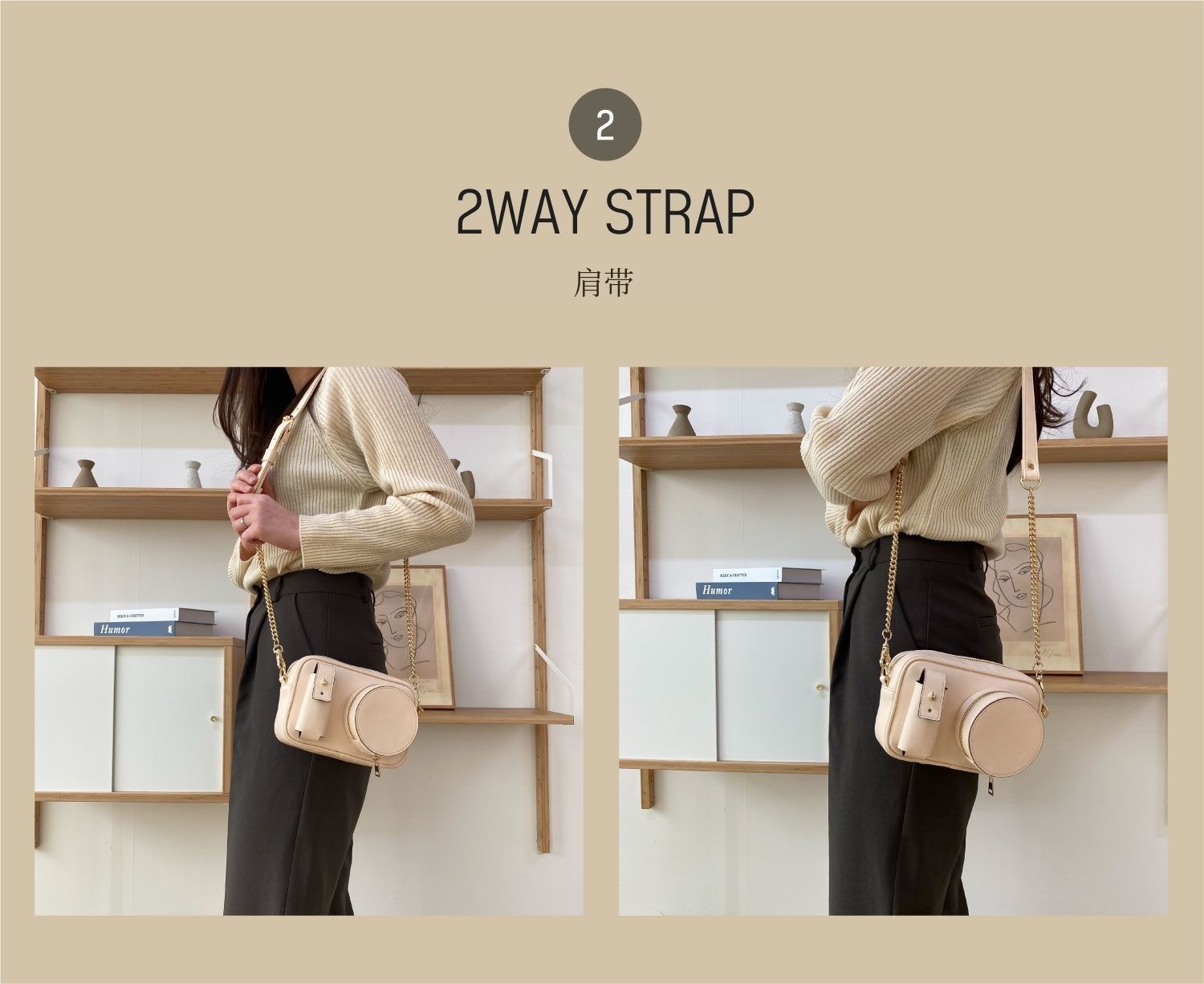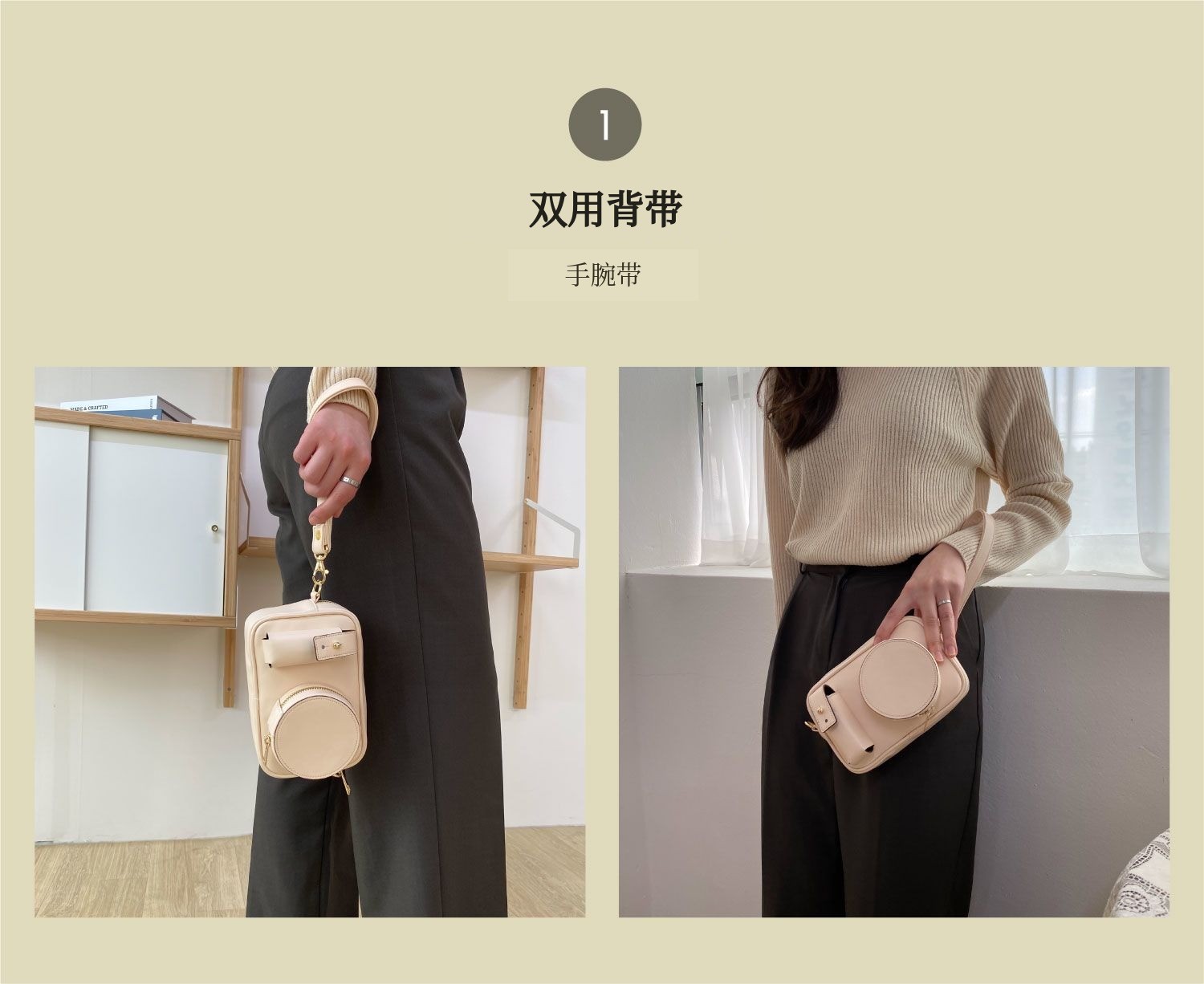 可以像普通斜挎包一样背在肩上,也可以使用手腕带挂在手腕上。通过手提包两侧的挂钩可以轻松拆卸。