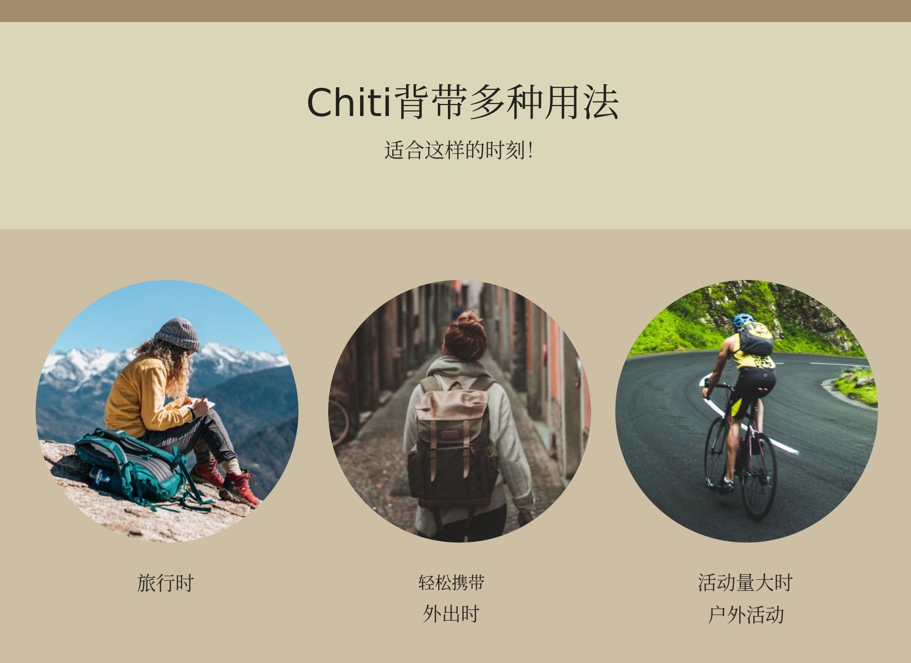 CHITI包的正面和背面共有3种不同形状的口袋 都配备了。