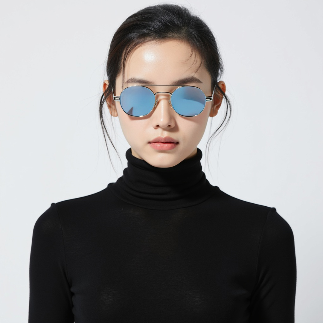 [🏔雪山登山,银色镜框+蓝色镀膜镜片]