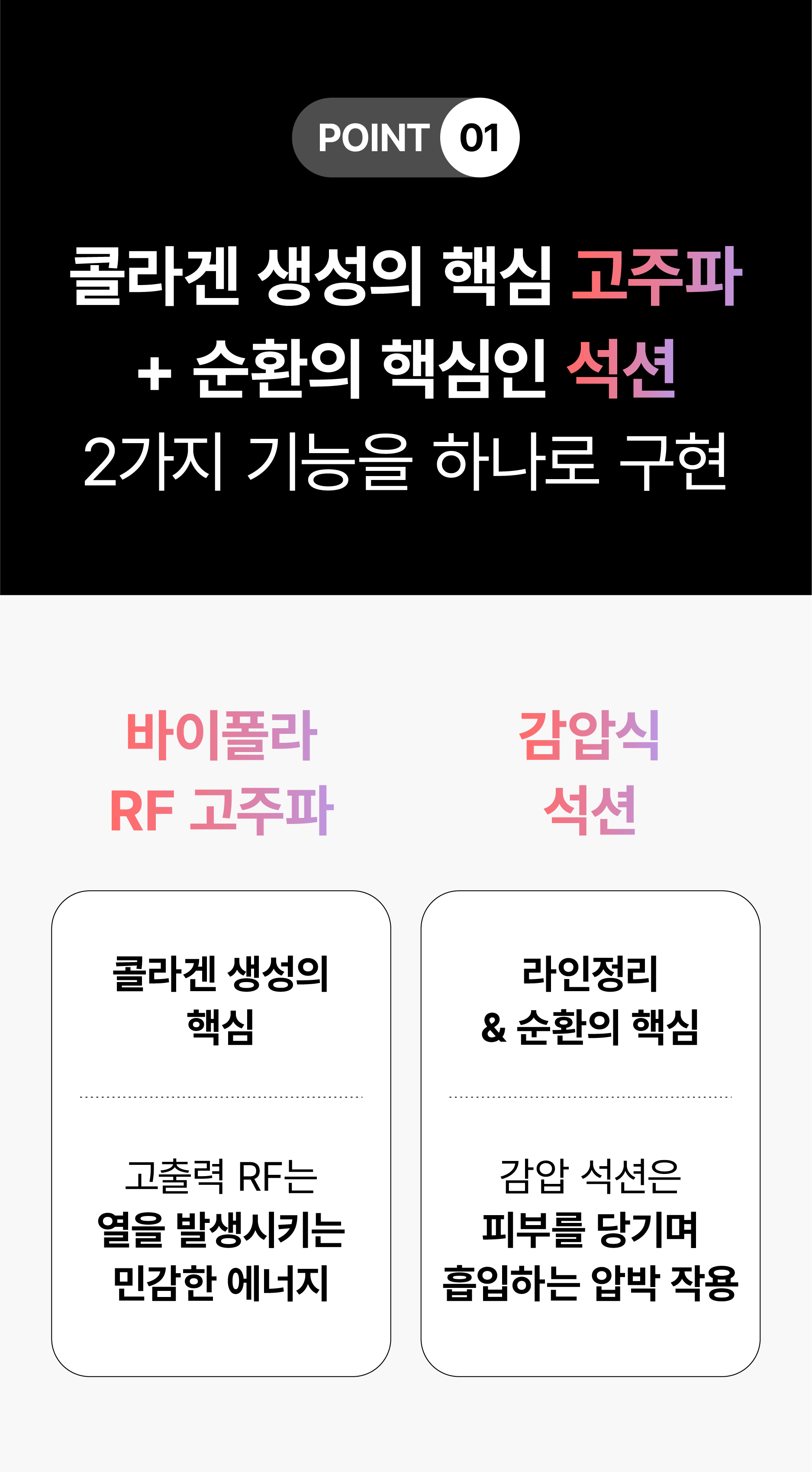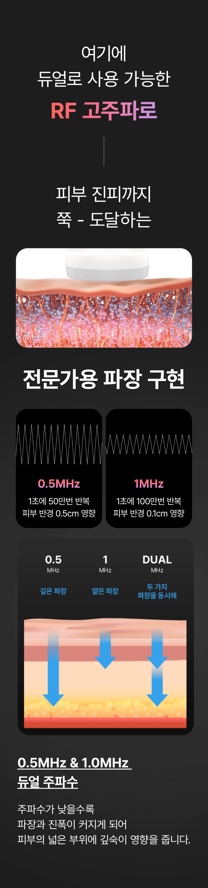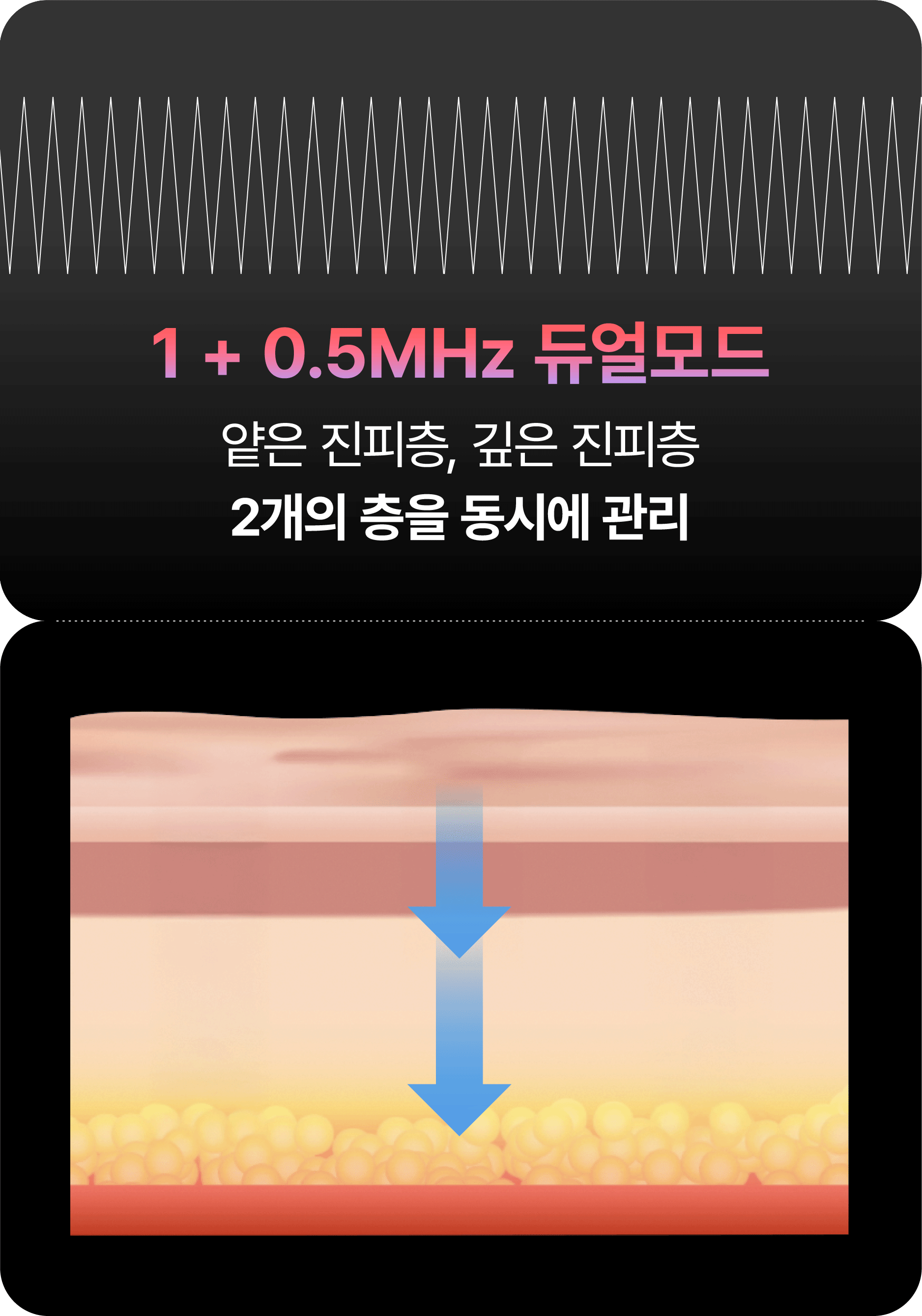 다른 고주파와 달리, 바이폴라 방식은 두 개의 전극 사이에만 전류가 흐르는 구조로 설계되어 있습니다. 이 방식은 에너지 전달 부위를 국소화하여 피부에 가해지는 자극은 최소화하면서도, 진피층까지 고주파 에너지를 안전하고 정확하게 도달시킬 수 있습니다.
