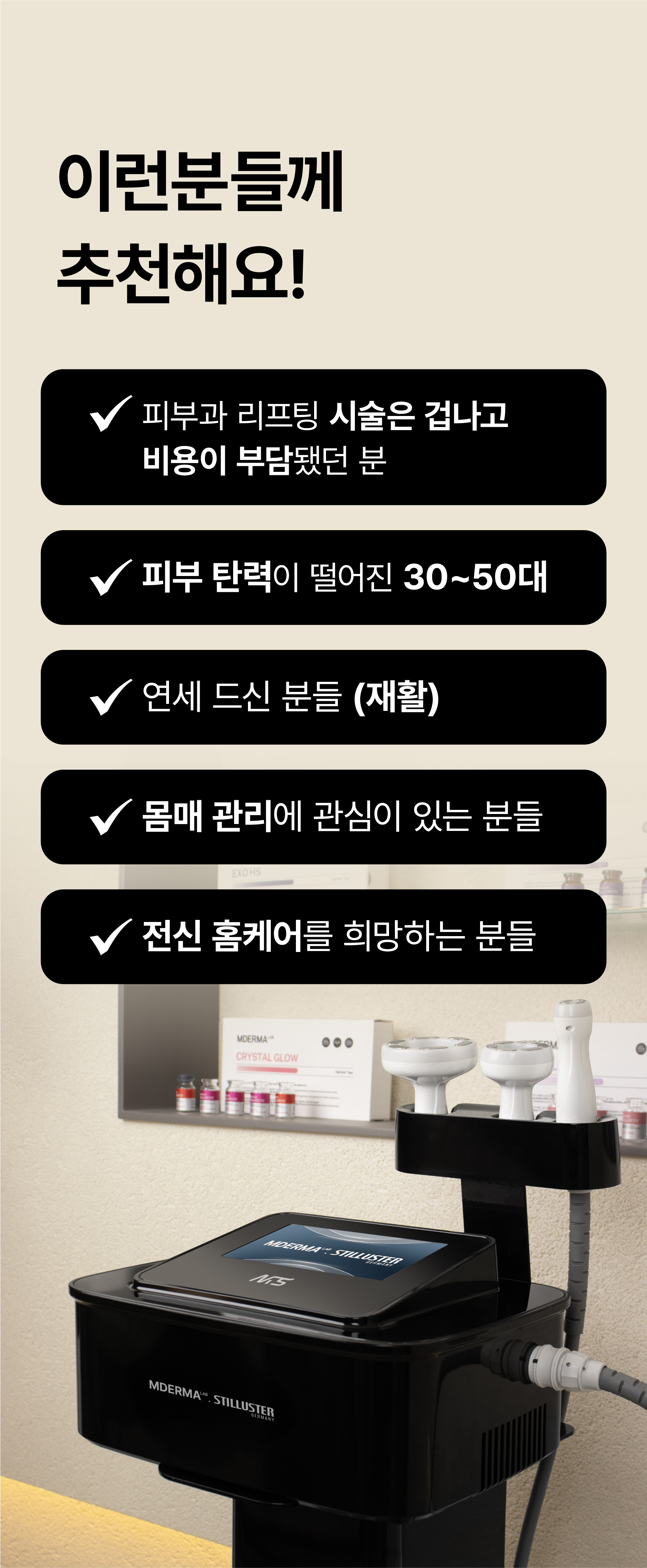 “전문가가 쓰는 기기 그대로 집에서도 쓸 수 있다면 어떨까?” 그 질문에서 시작된 고민은 하나의 솔루션으로 완성되었습니다.