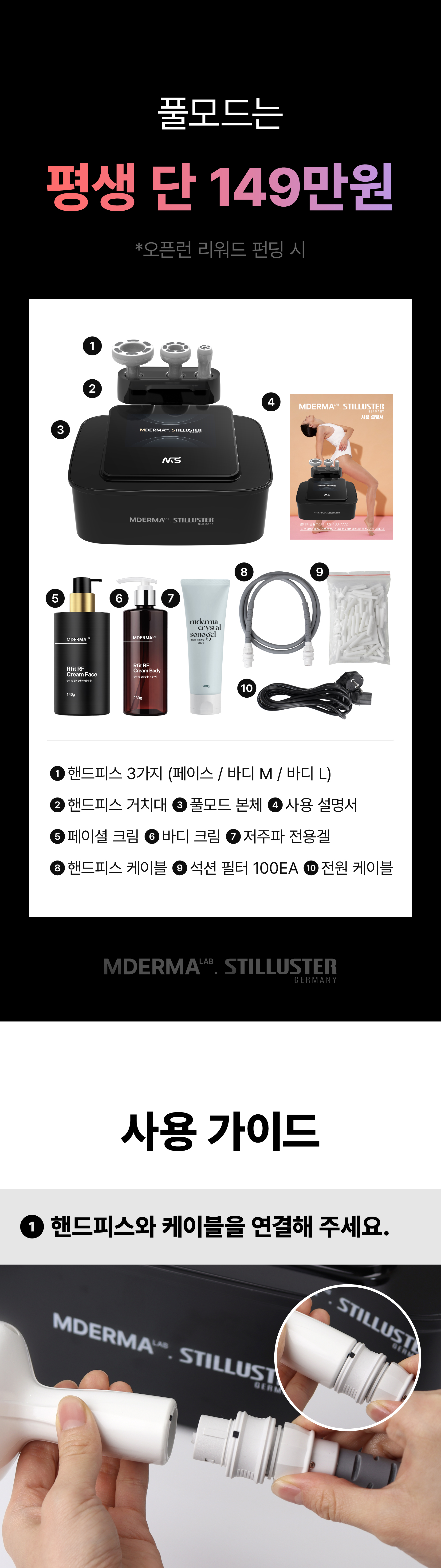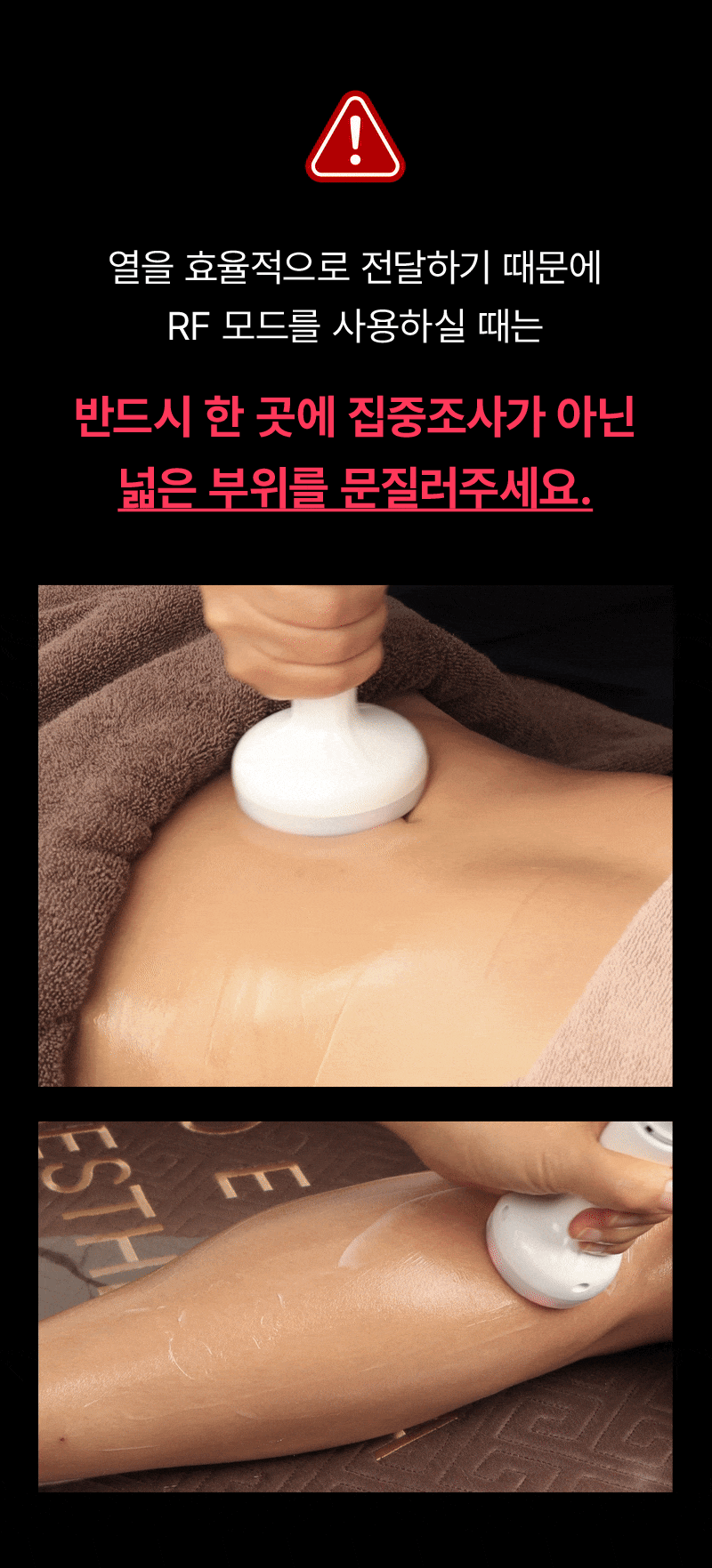 • 기기관리시 고주파 크림(매개체)을 넉넉히 사용하시기 바랍니다. (핸드피스 사용시 수분감으로 러빙이 부드럽게 될 정도의 양)