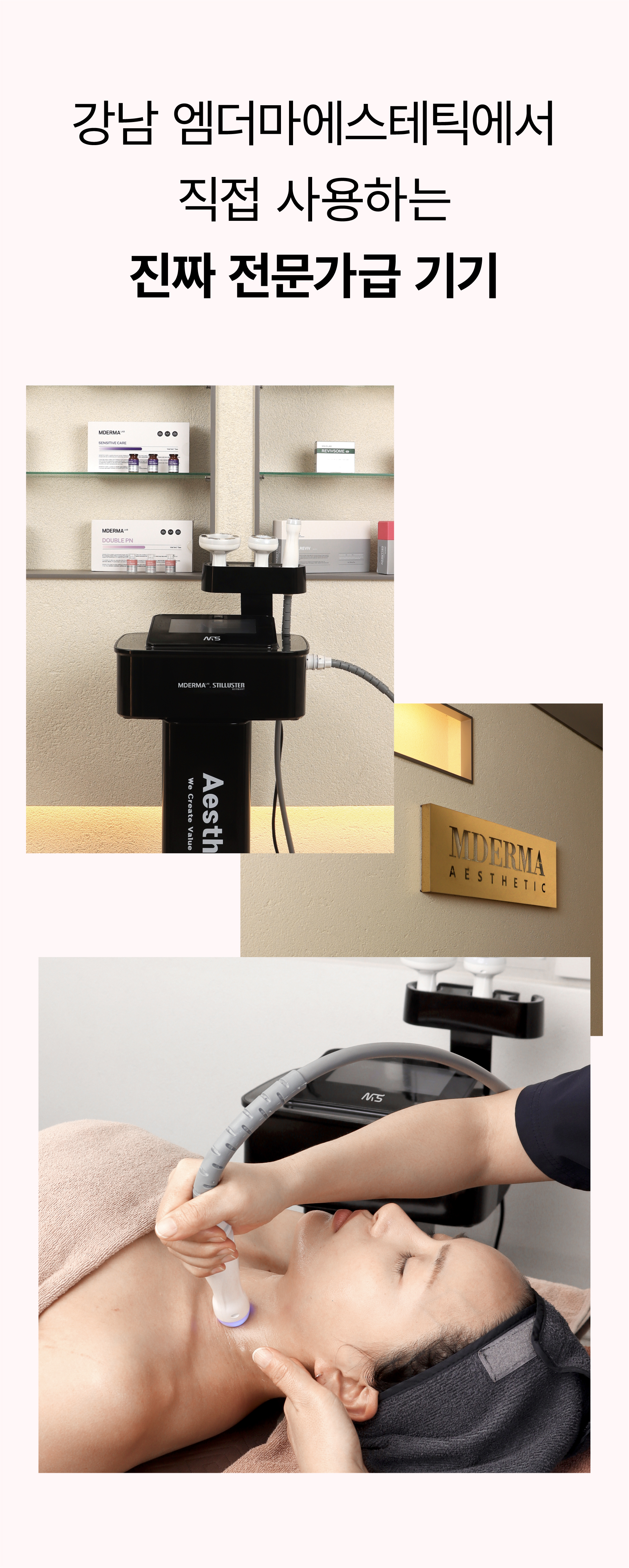 2025년 3월 31일, 서울 강남구 신사동에 프라이빗 에스테틱 공간 ‘MDERMA AESTHETIC’을 오픈했습니다. 이곳에서는 우리가 만든 디바이스를 실제로 시술에 활용하고 있으며, 더 많은 사람들이 직접 경험하고 있습니다.