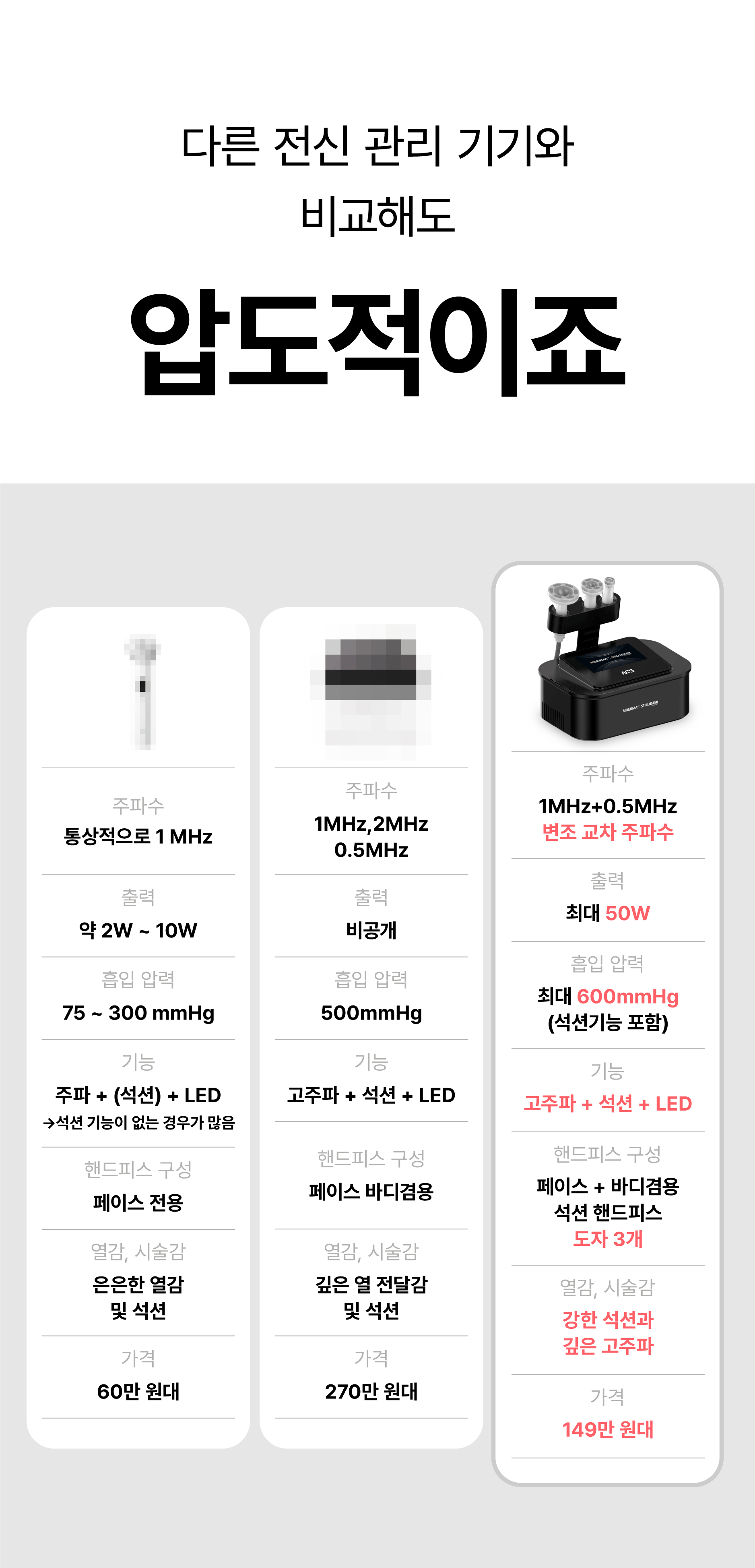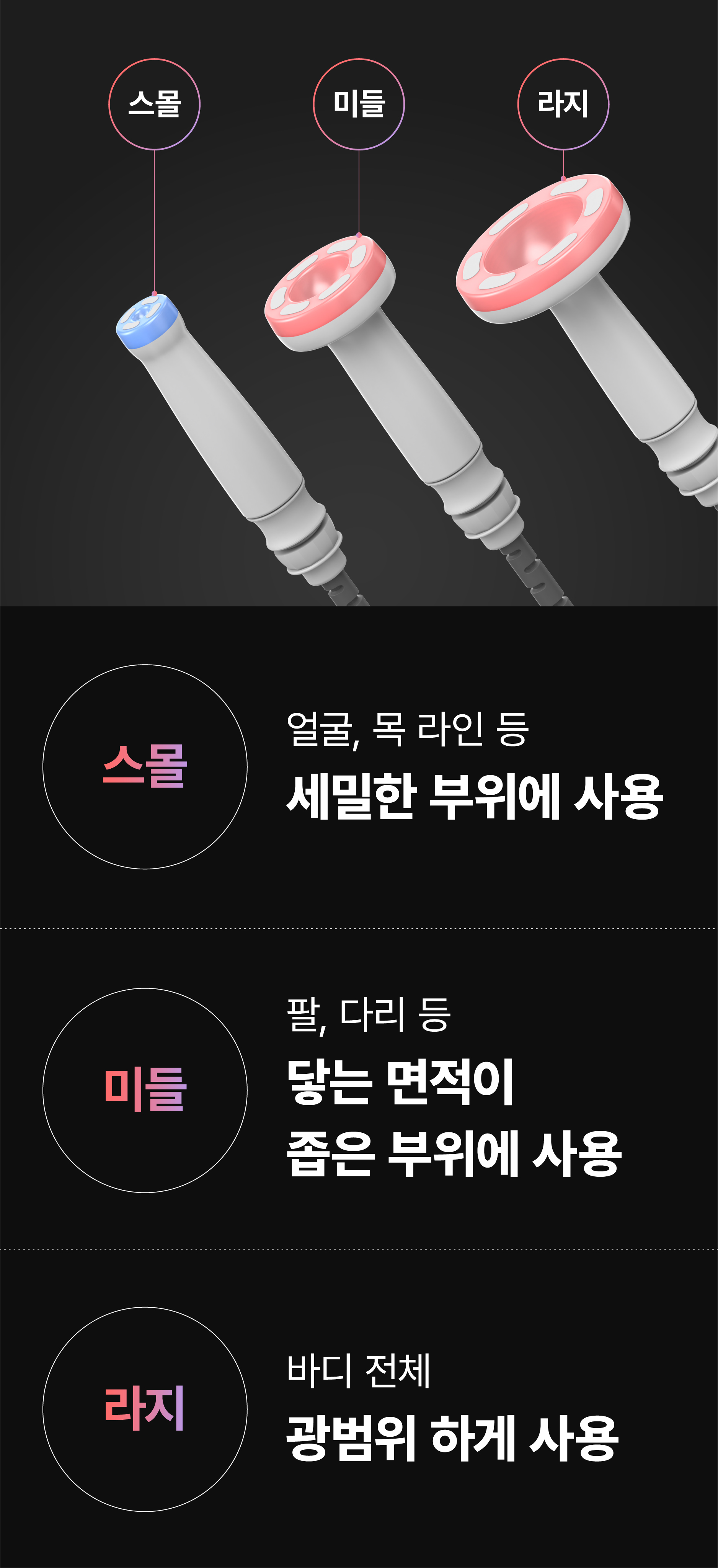 전신 모든 부위에 사용 가능한3가지 헤드