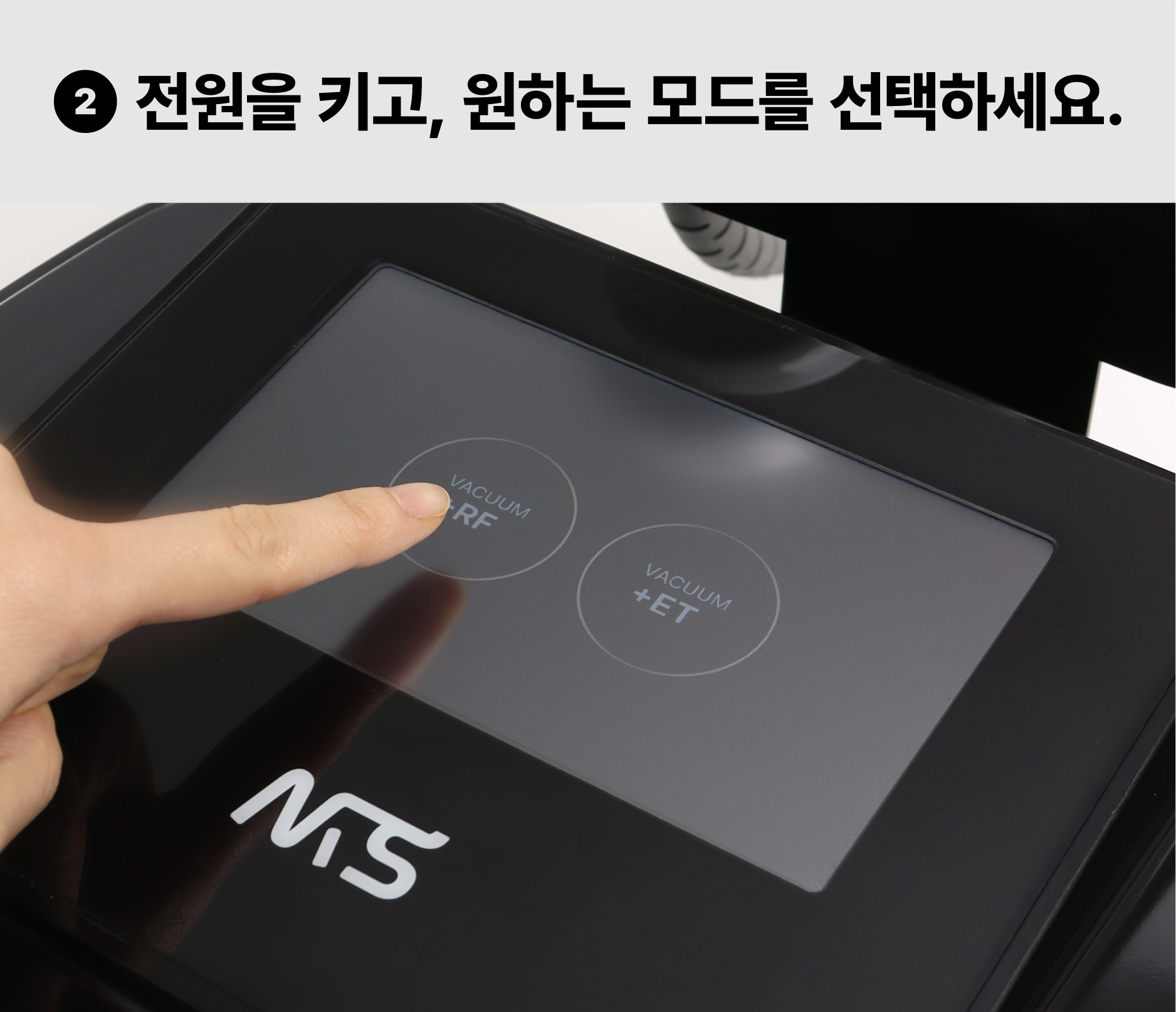 전원을 키고, 원하는 모드(RF, EMS, 석션)를 선택해 주세요.