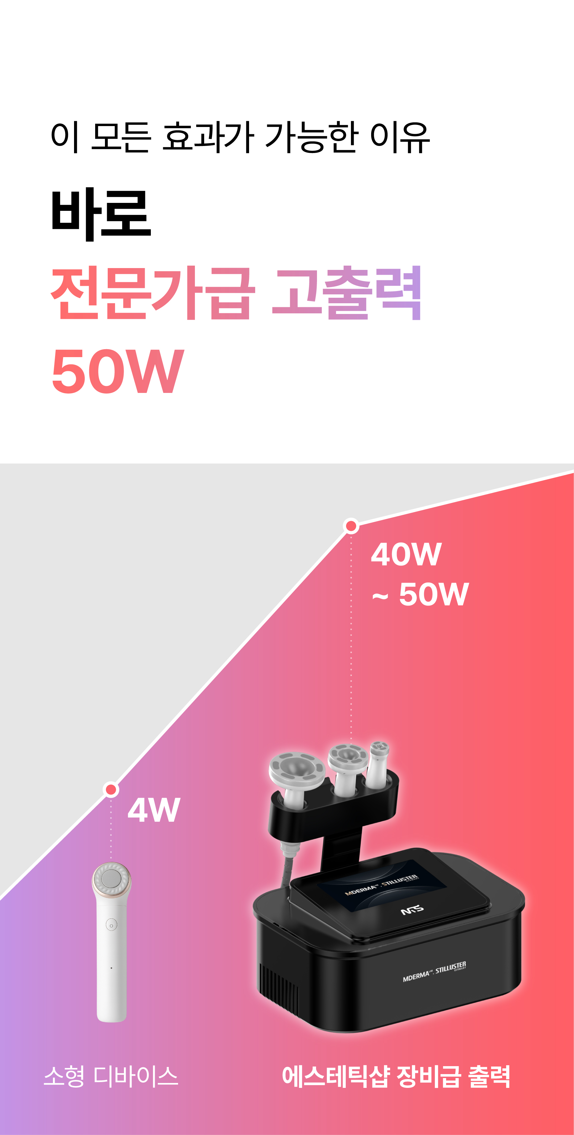 엠더마 알핏2는 50W의 전문가급 고출력을 지원합니다.
