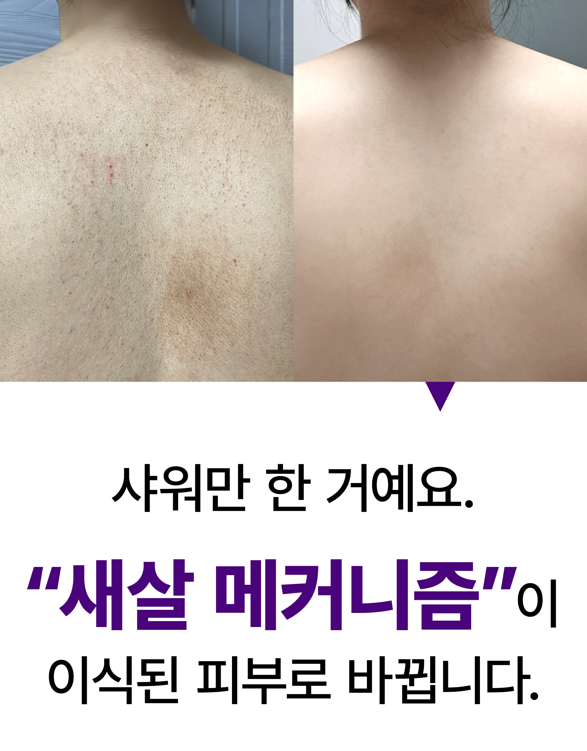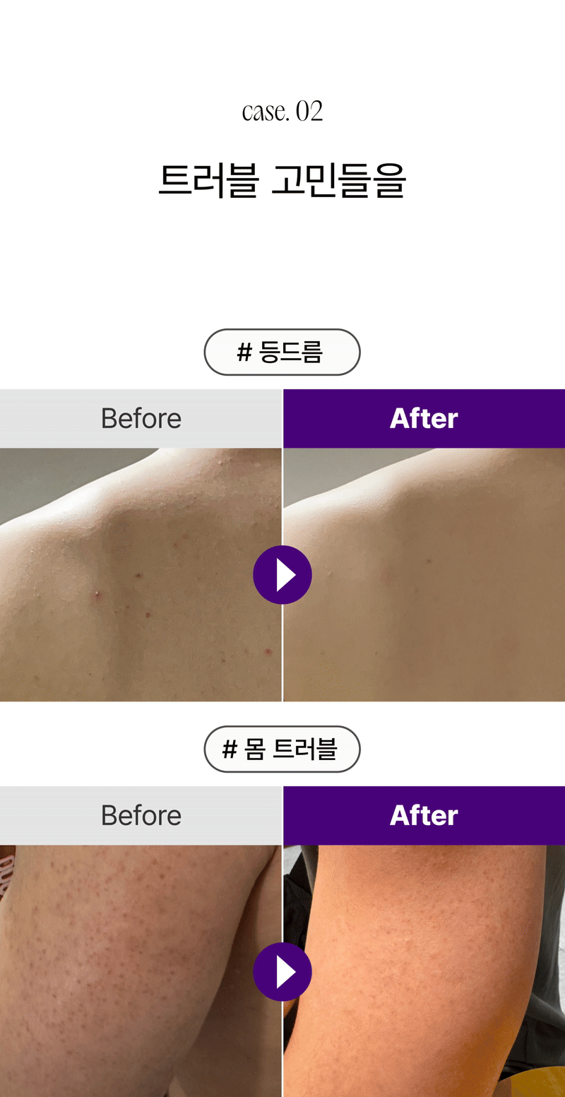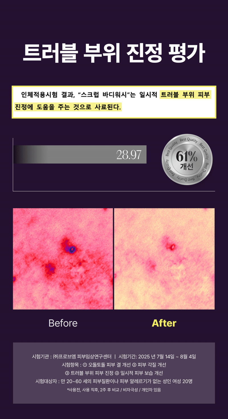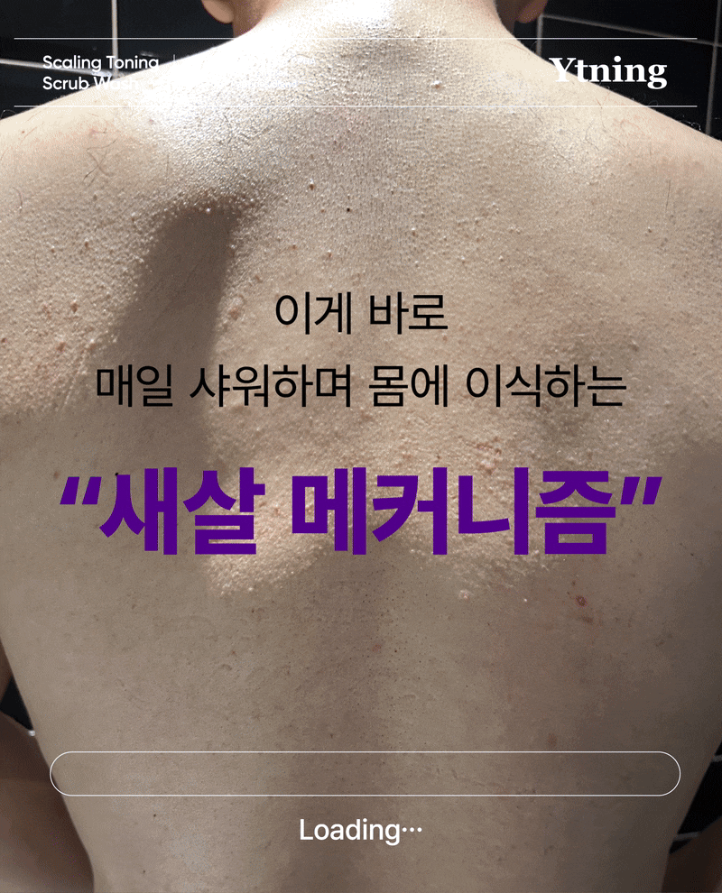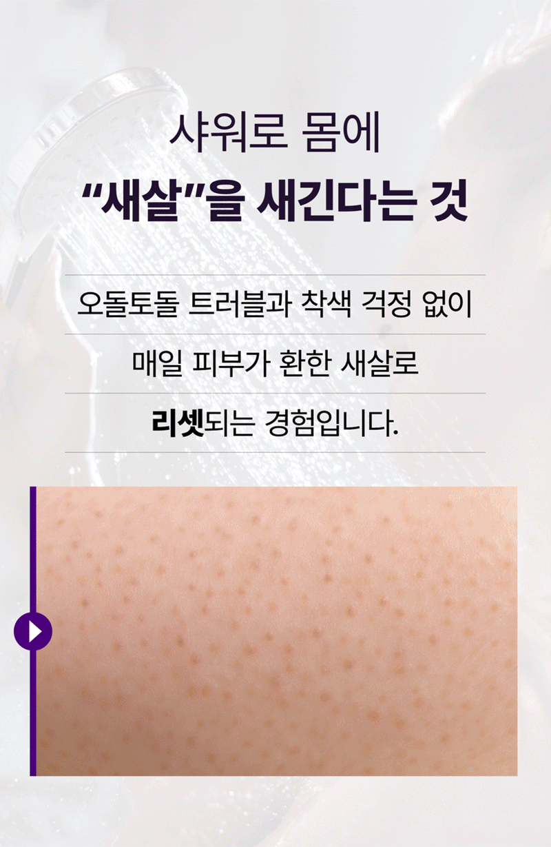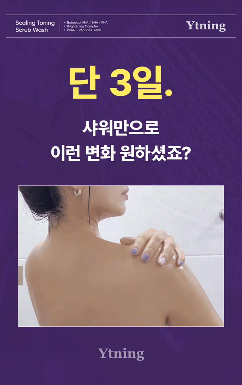 매일 샤워하며, 트러블 모공각화 착색자국들을 없애고 "매끈하고 환한 새살" 이 돋아날 수있게