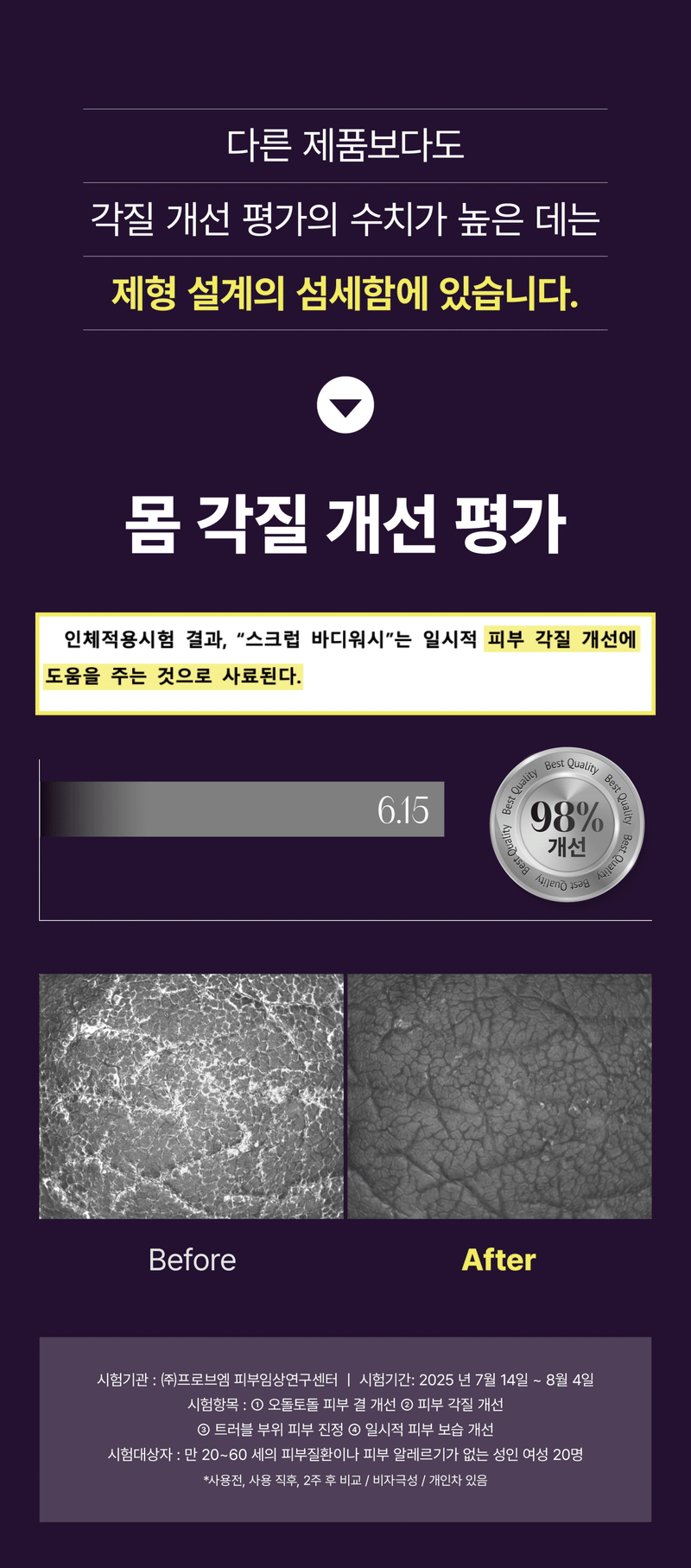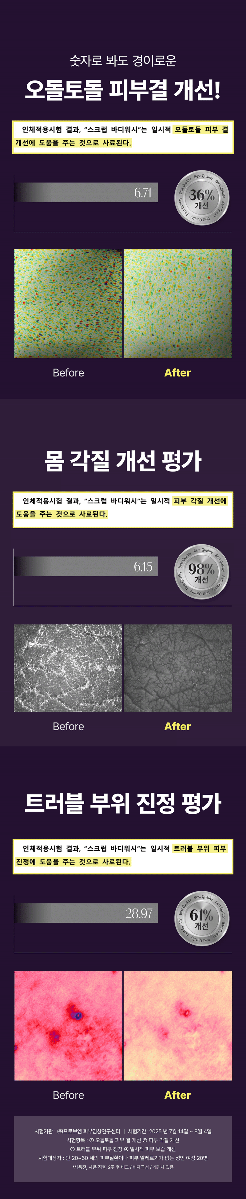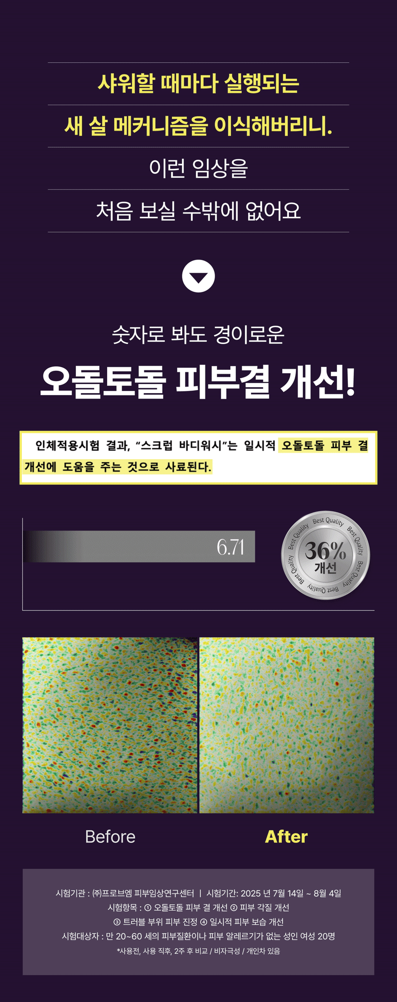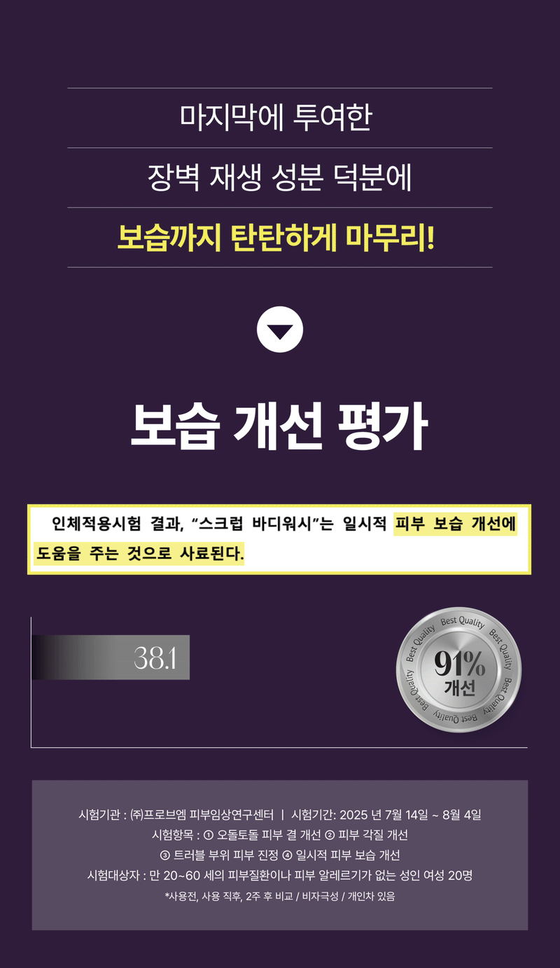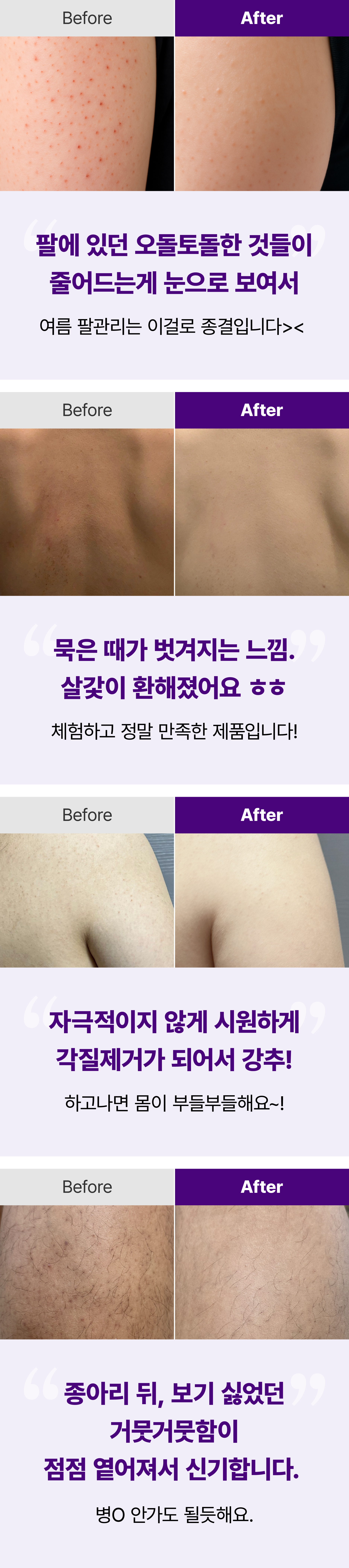 매일 샤워하며, 트러블 모공각화 착색자국들을 없애고 "매끈하고 환한 새살" 이 돋아날 수있게