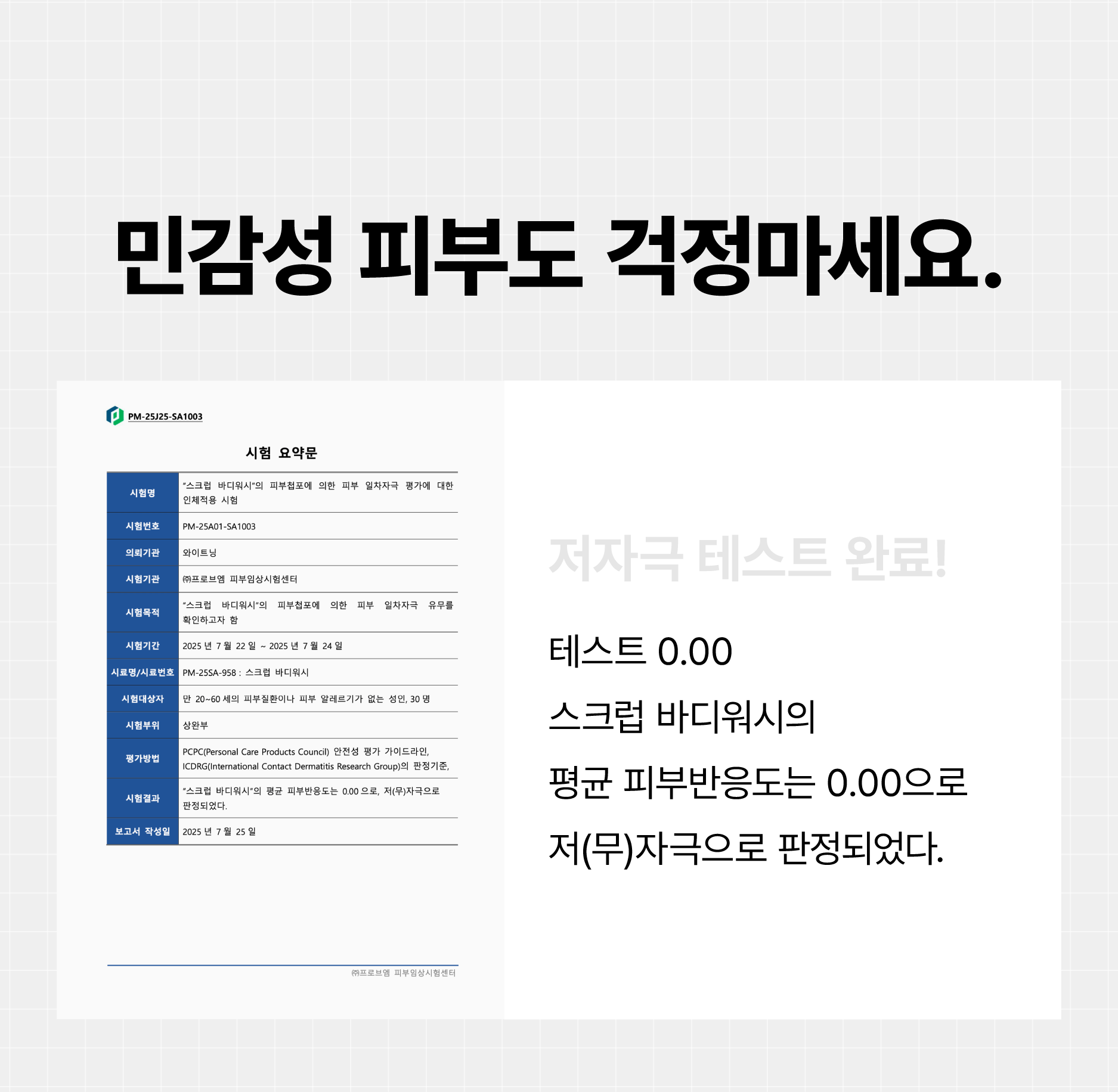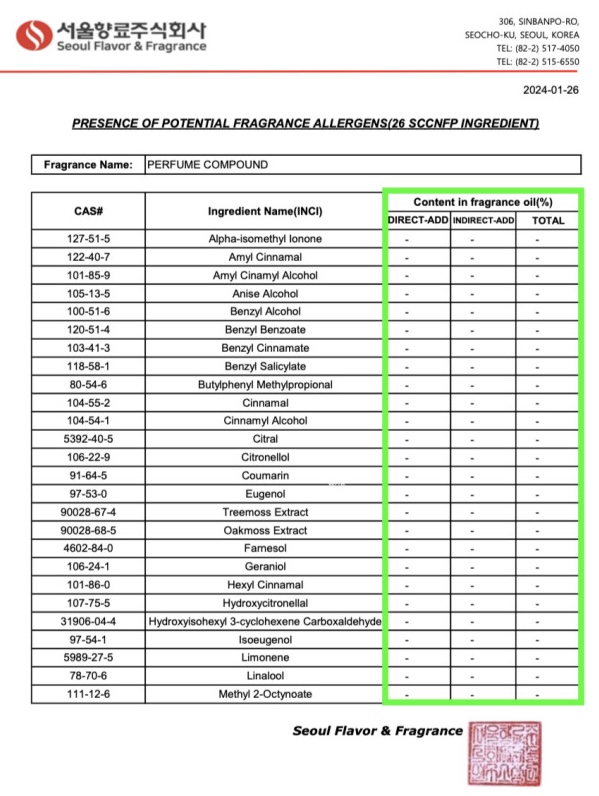 국제 기준 26 알러젠 성분 불검출 테스트 완료.