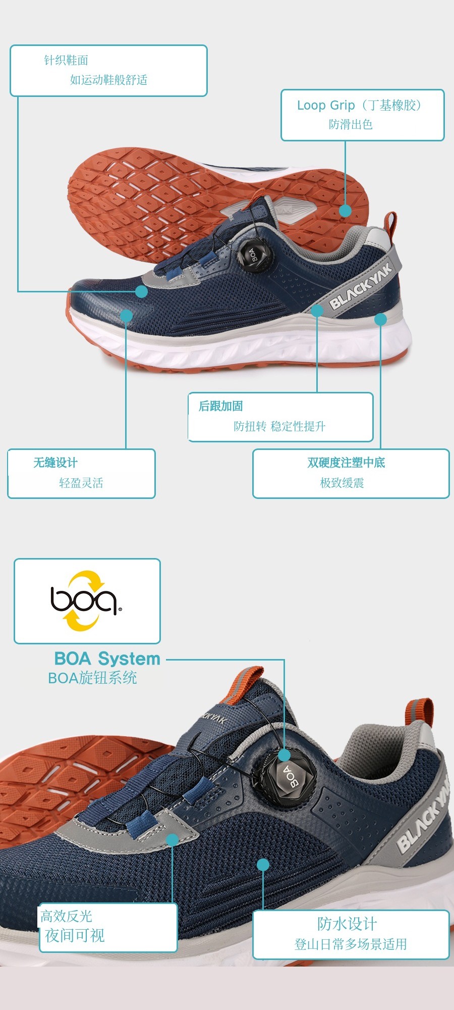 凭借BLACKYAK独有的技术,采用丁基橡胶混合制成的“LoopGrip”。LoopGrip能有效防止登山、徒步、旅行等各种环境下可能发生的滑倒, 此外,兼顾功能性与轻量化的大底设计,让您的旅程更加舒适。