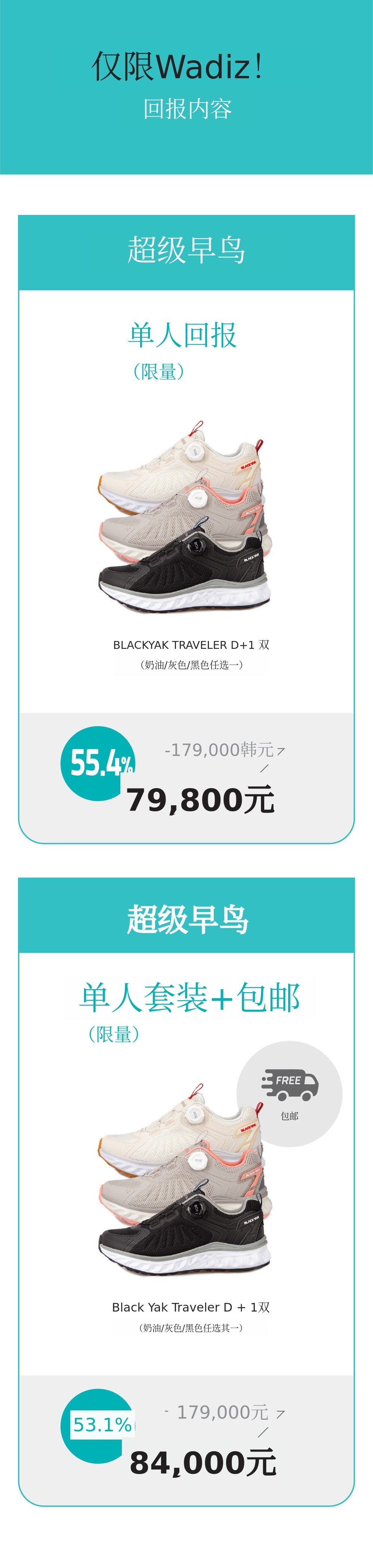 为支持者们 [BLACKYAK TravelerD+] 为了宣传其功能性,希望展示优质产品的心意用心准备了[仅在Wadiz提供的专属组合与价格优惠让您能够体验。