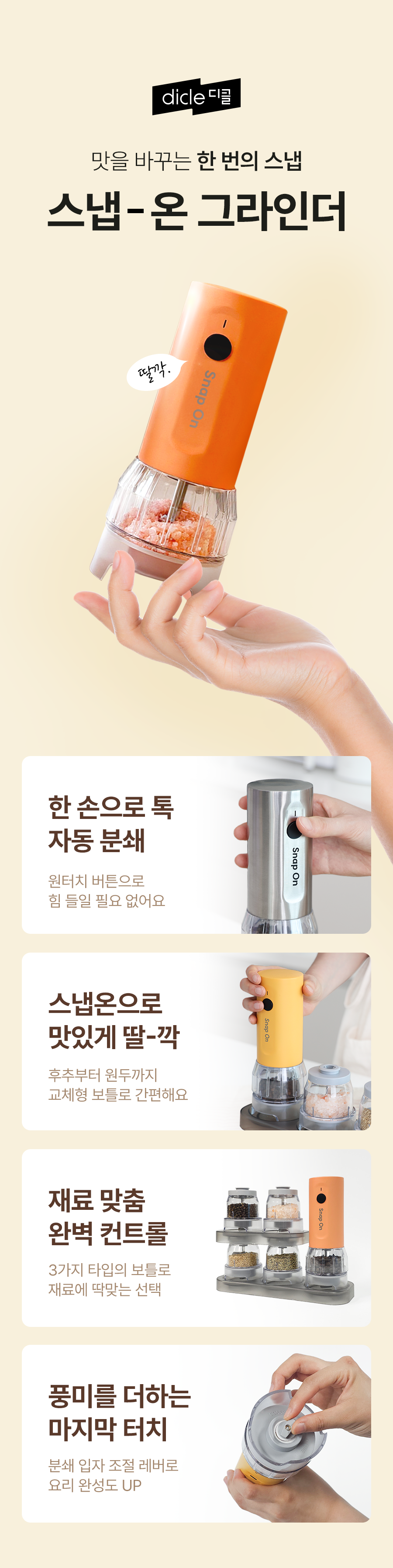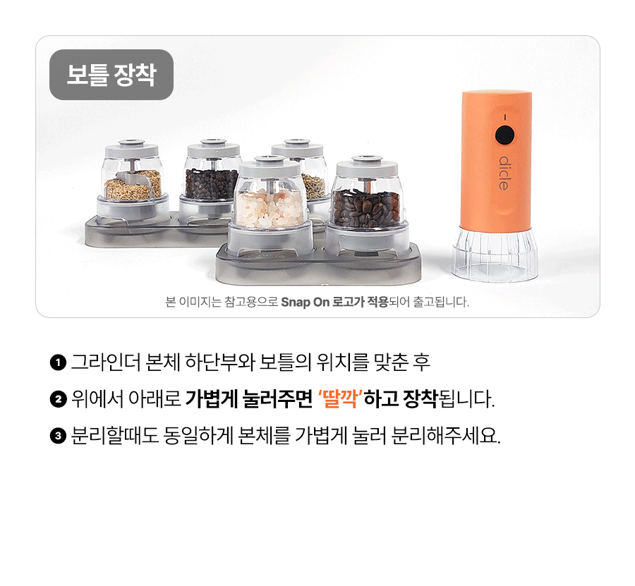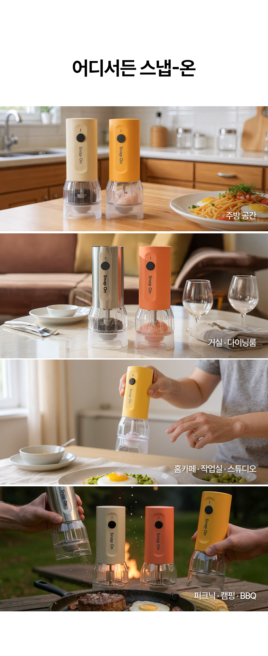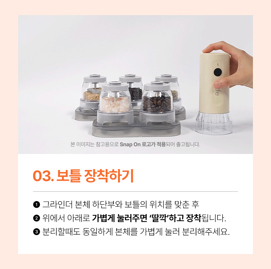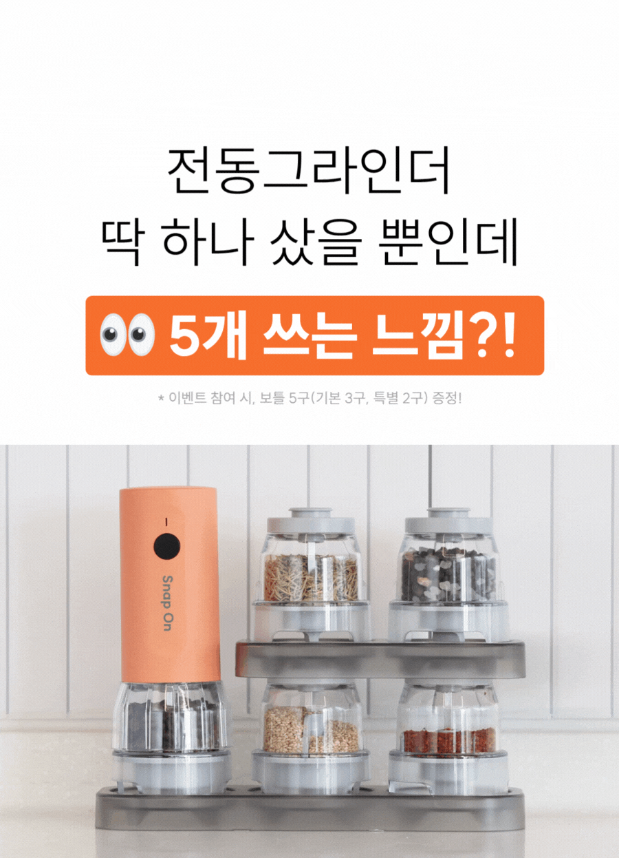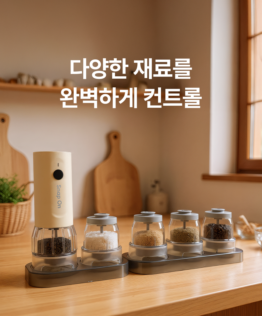 스냅온 하나만 있으면 후추, 소금에 커피빈까지 분쇄 끝!