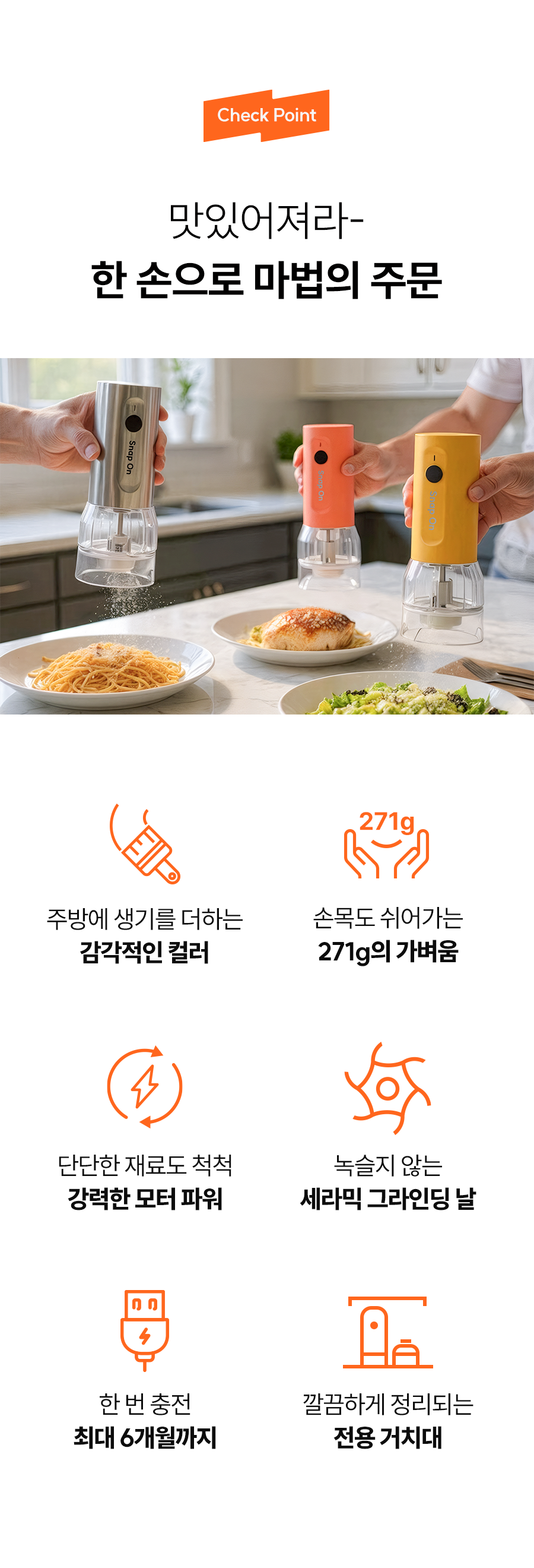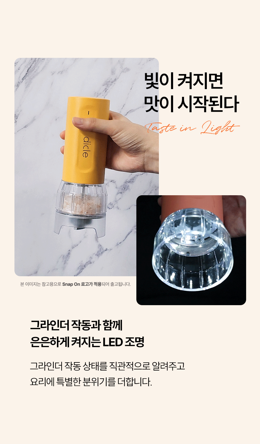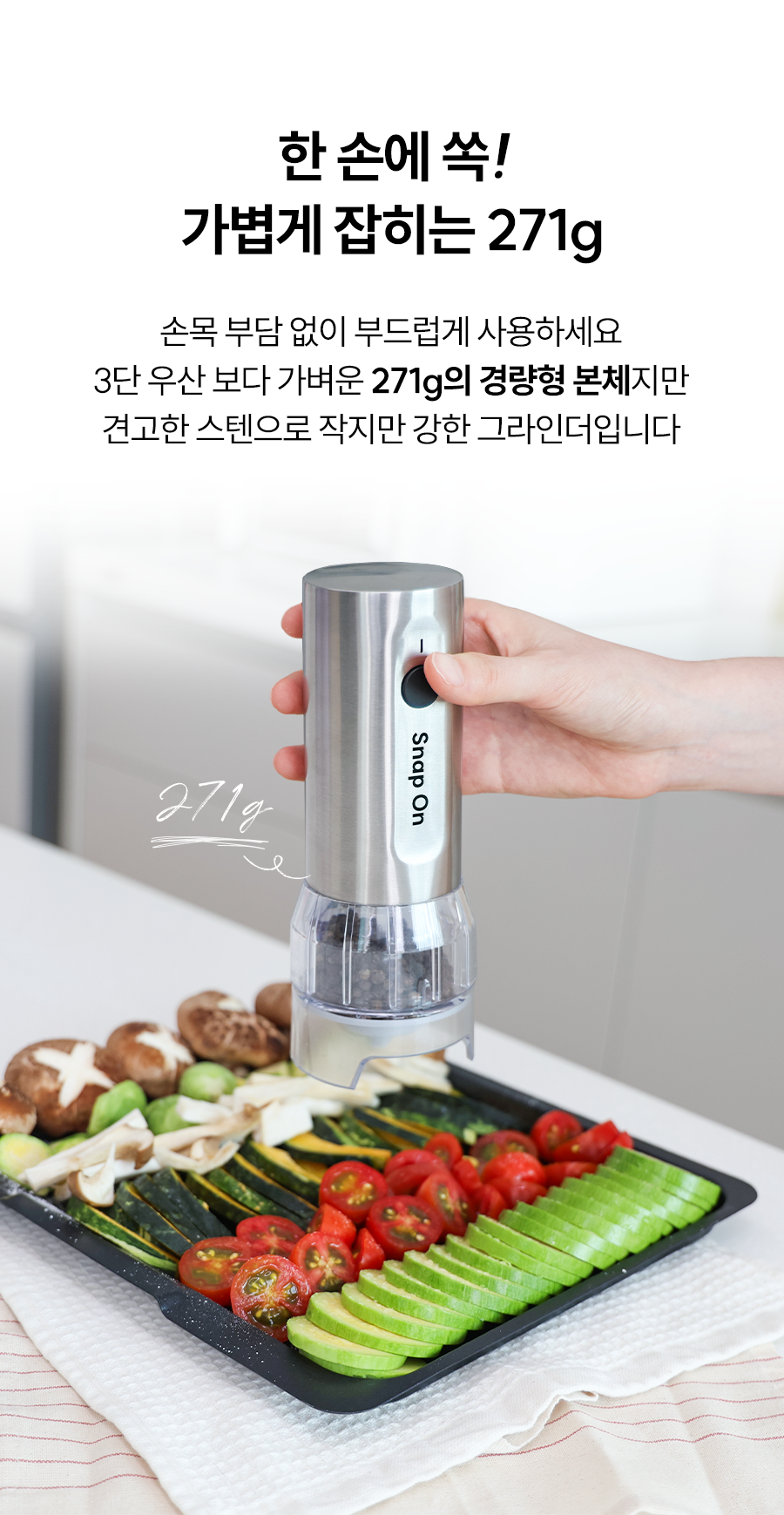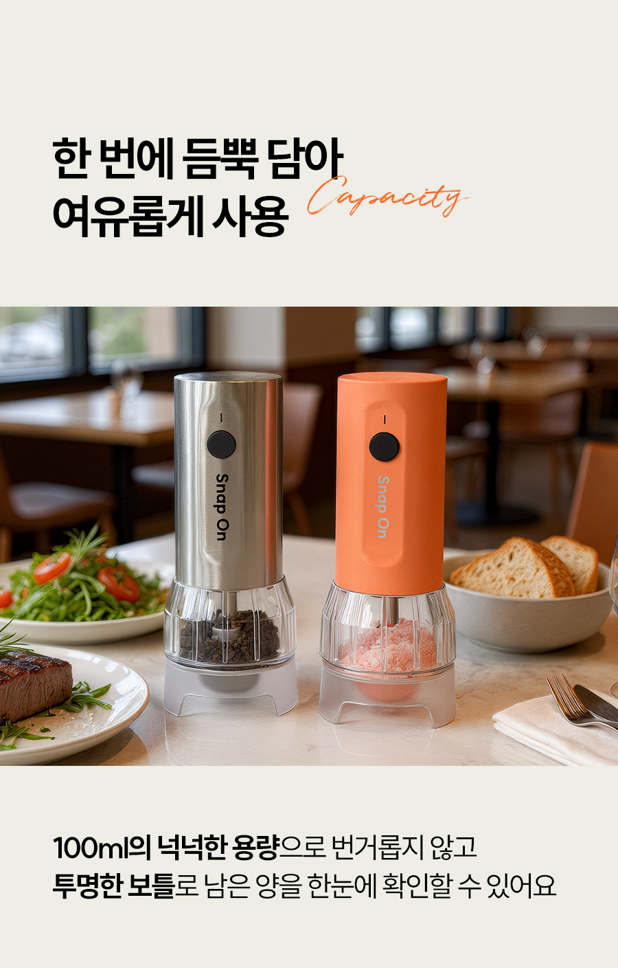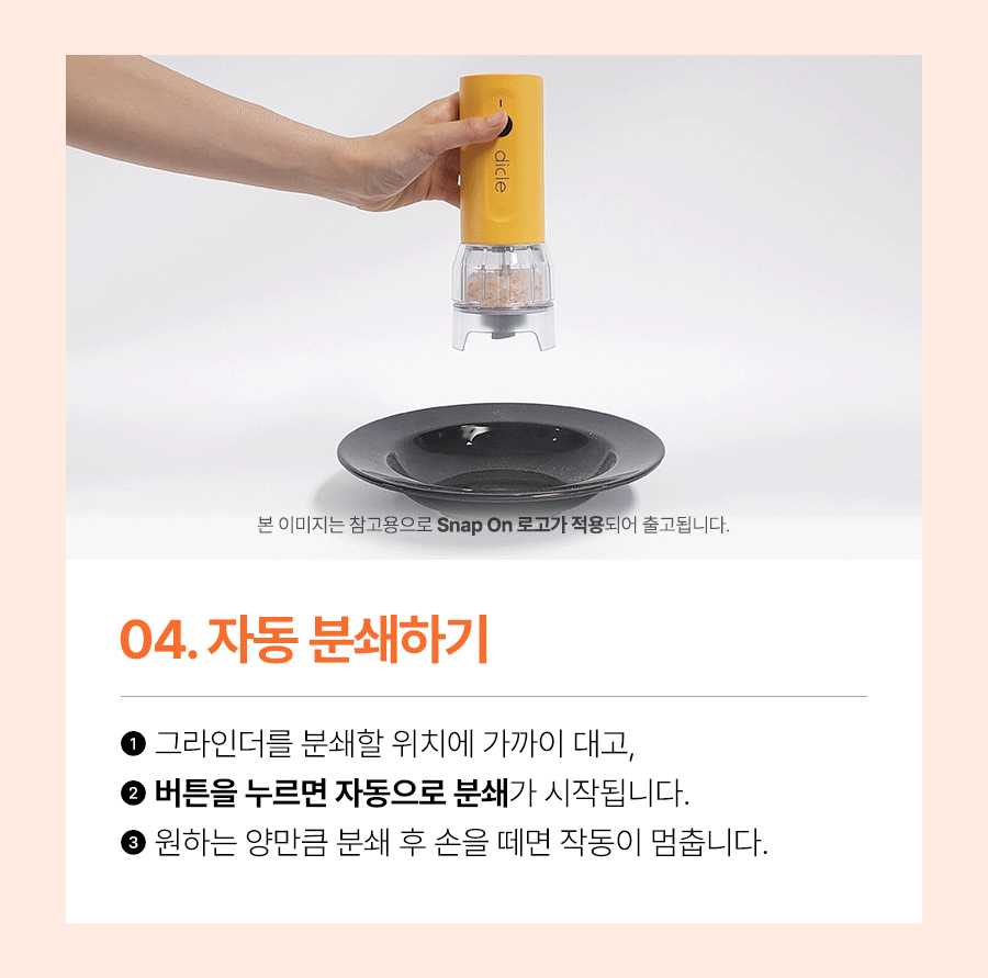 스냅온 하나만 있으면 후추, 소금에 커피빈까지 분쇄 끝!
