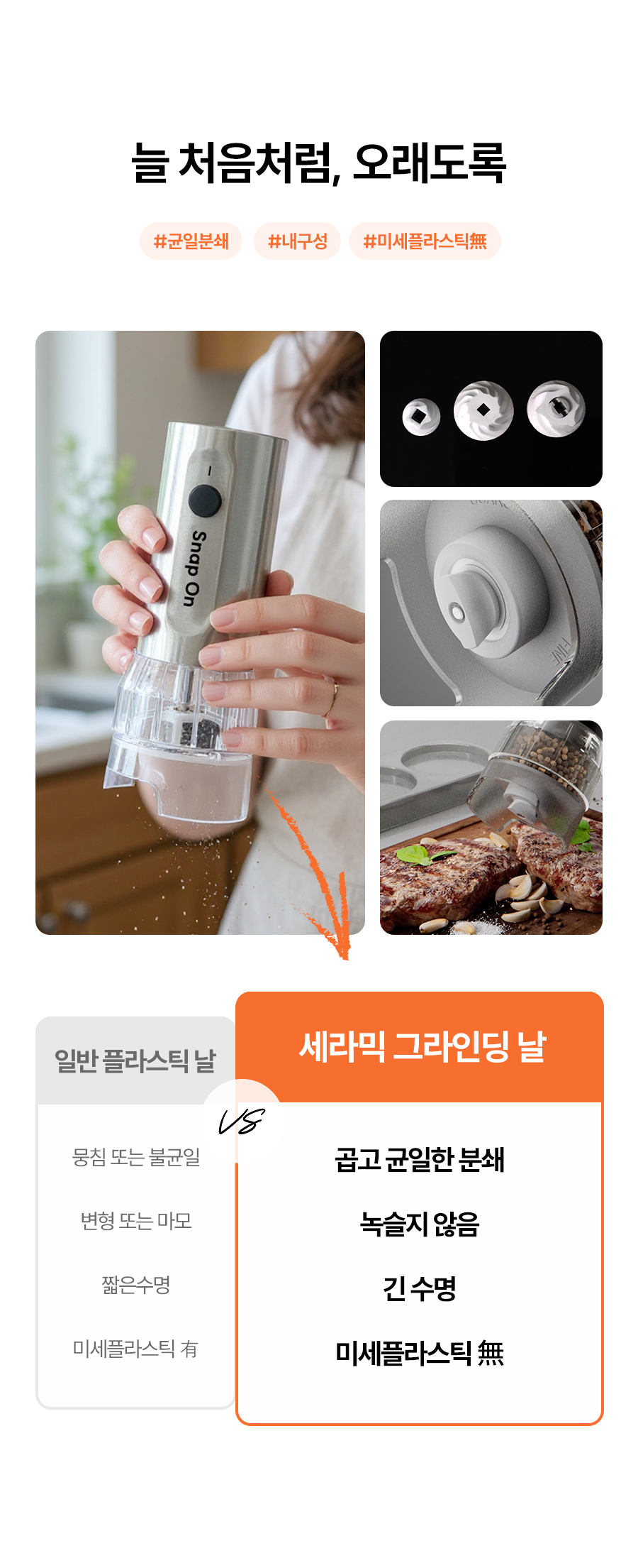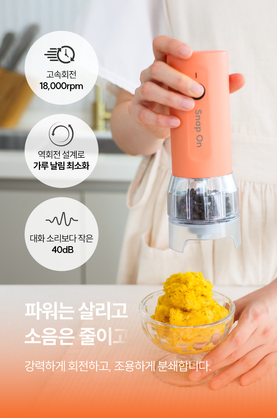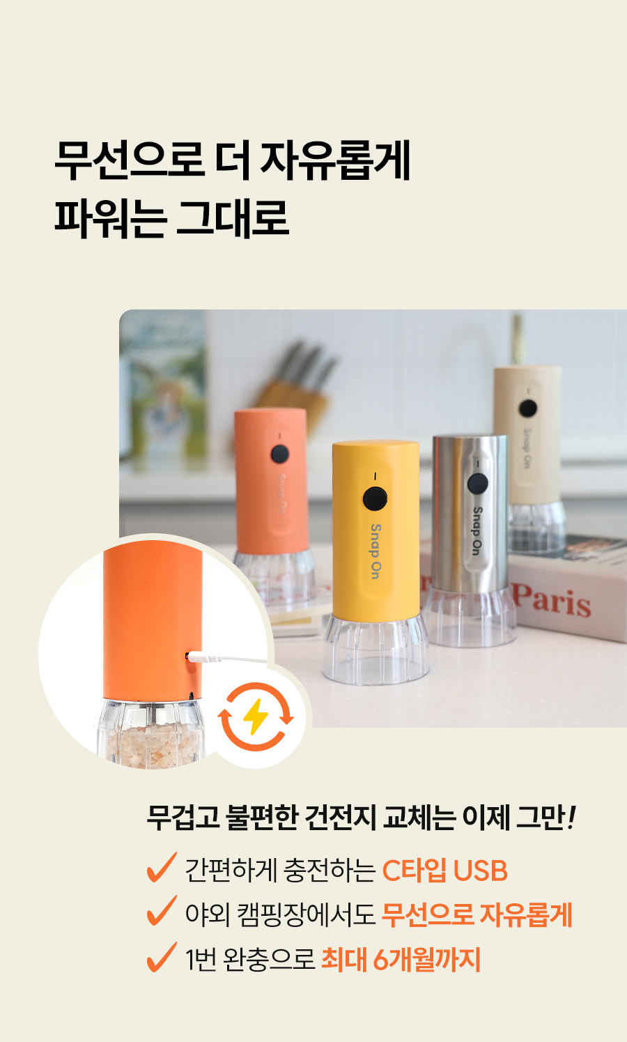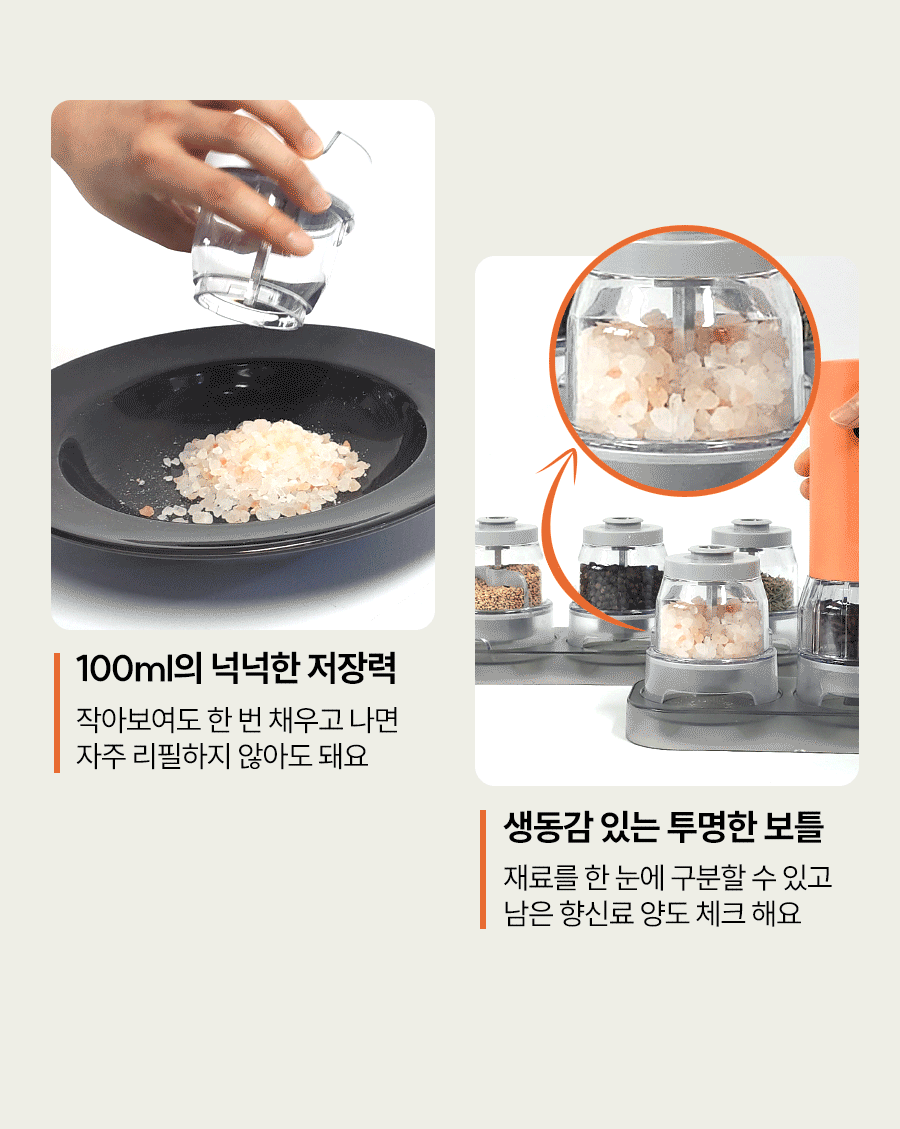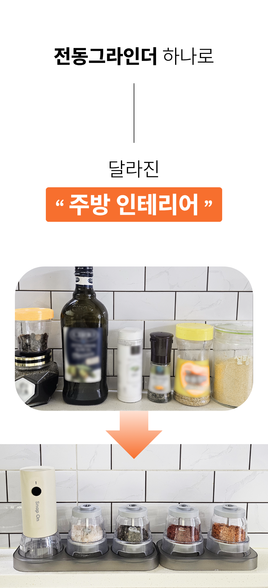 스냅온 하나만 있으면 후추, 소금에 커피빈까지 분쇄 끝!