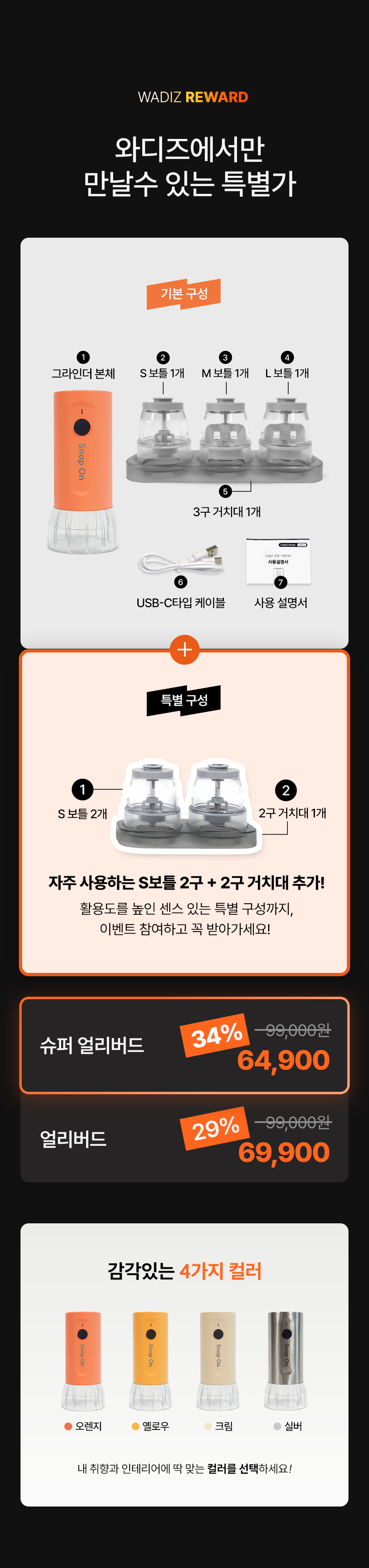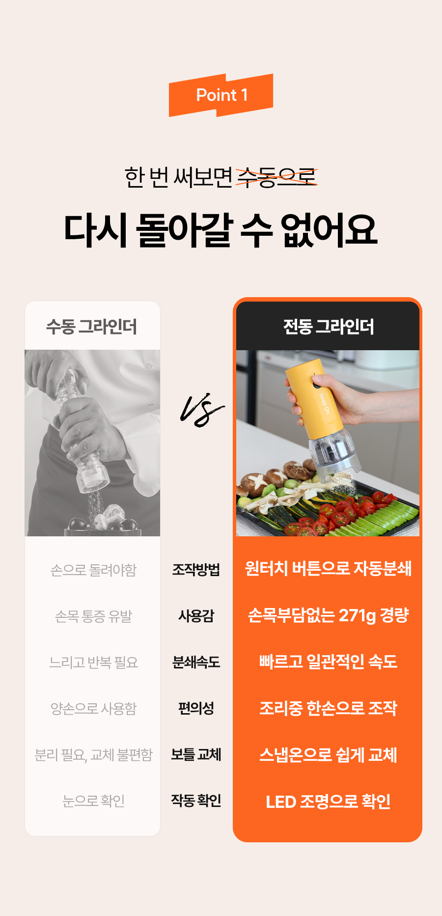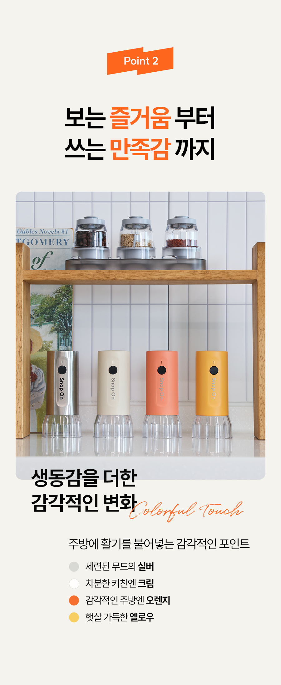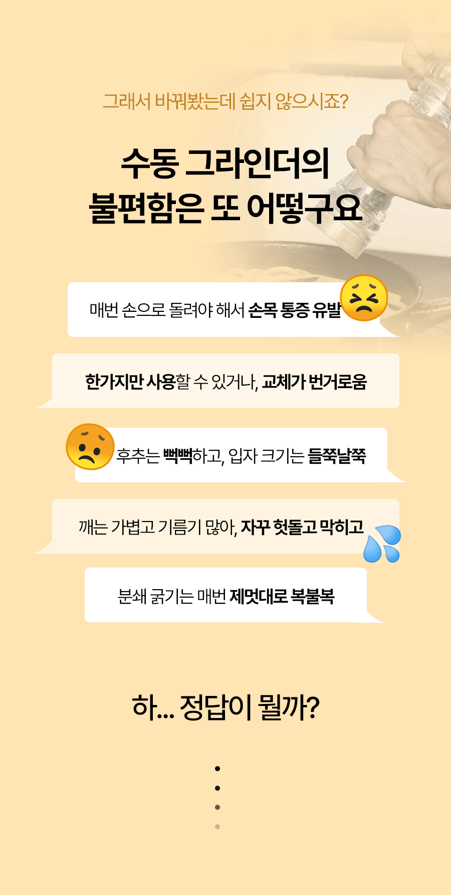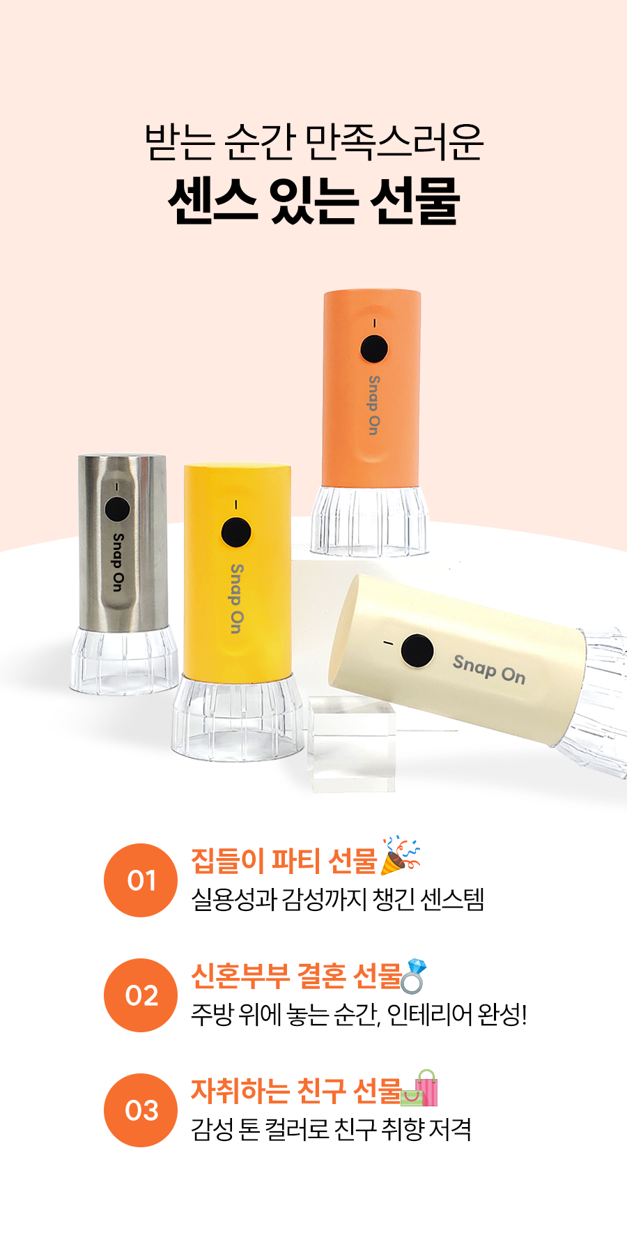스냅온 하나만 있으면 후추, 소금에 커피빈까지 분쇄 끝!