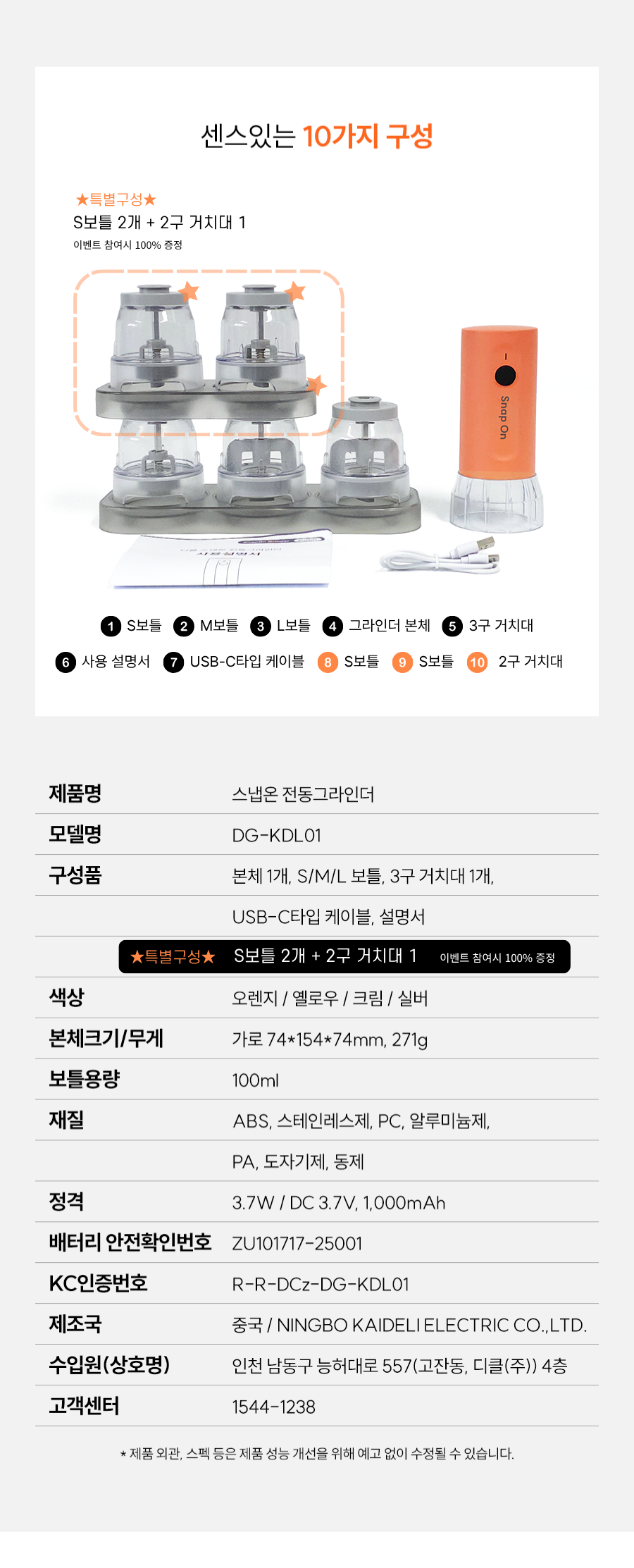 1. ⚙️ 5合1电动研磨器 - 一键自动研磨,单手快速更换瓶体 2. 🍳 厨房空间升级 - 简洁设计与专用支架实现整洁收纳 3. 🎁 独家众筹优惠 - 特别价格赠送S瓶和双瓶支架