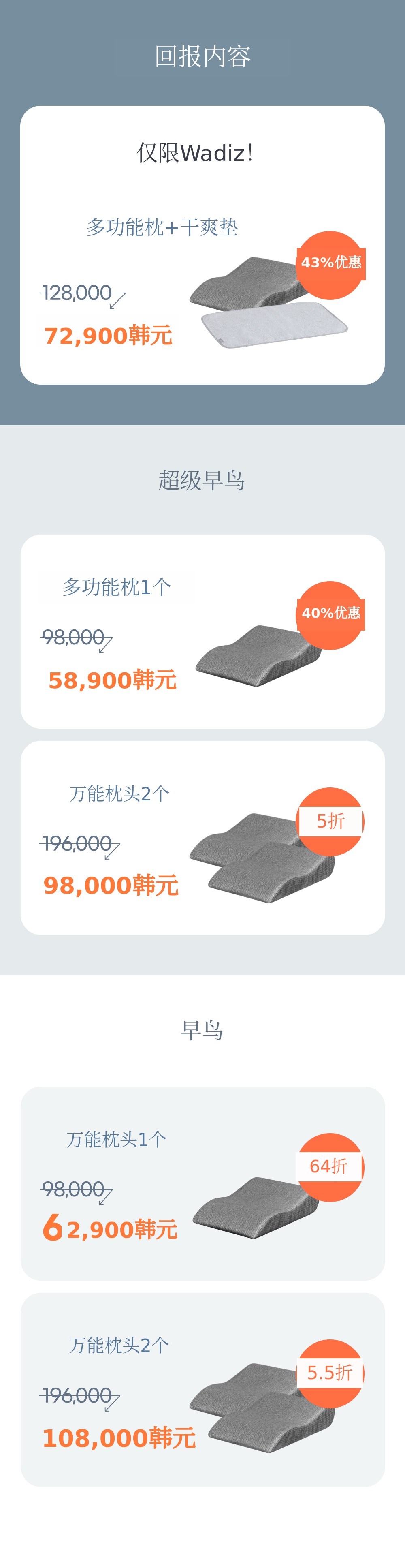 为了全面提供睡眠基本权,必须满足包括睡眠环境在内的五感需求,为此产品开发仍在持续进行。筹集的资金将用于开发完善睡眠基本权的产品线,实现真正的睡眠基本权。 - 众筹回报事项说明
