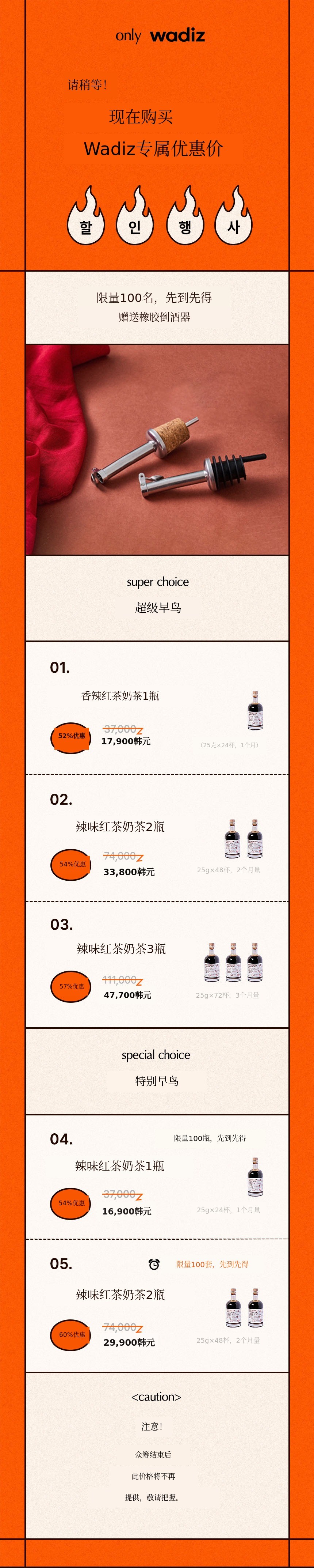 在Wadiz首次介绍的‘香辣红茶奶茶’是加入了生姜、黑胡椒、红辣椒等8种香草&香料煮制而成的产品。与红茶叶融合,不仅拥有独特的口感和风味,还富含营养成分。希望大家品尝美味的香辣红茶奶茶,让你的明天比今天更健康。