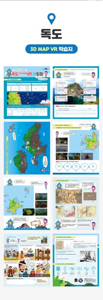 [배우는 독도] 연계 학습지: VR 체험과 연동된 체계적인 학습지로 독도의 역사, 지리, 생태 정보를 쉽고 재미있게 배울 수 있습니다. 학생들은 물론 온 가족이 함께 독도에 대한 지식을 쌓고, 우리 땅 독도에 대한 주권 의식을 자연스럽게 함양할 수 있습니다.