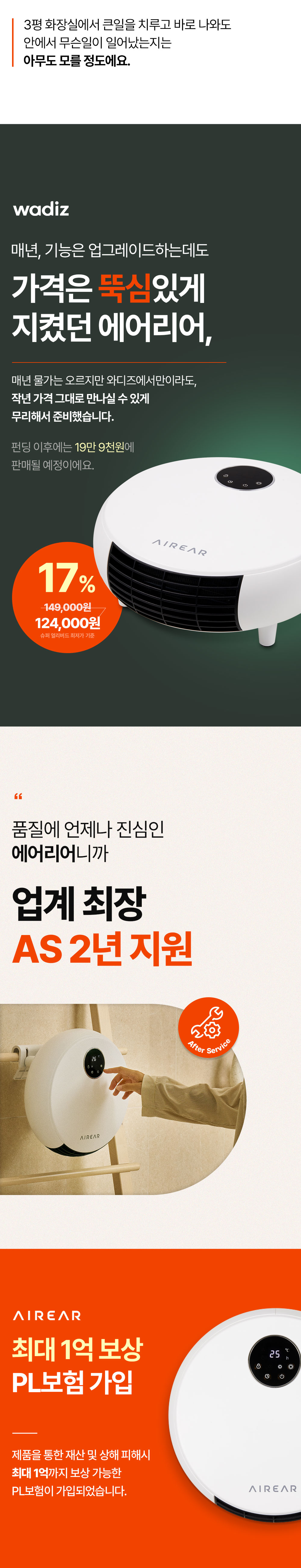 1. 🔥 浴室用暖风机 Airea A3 - 3秒快速加热,三档温控 2. 🛡️ 安全防水设计 - IP24防水等级,过热保护 3. 🎁 独家众筹优惠 - 快速安装,限量折扣