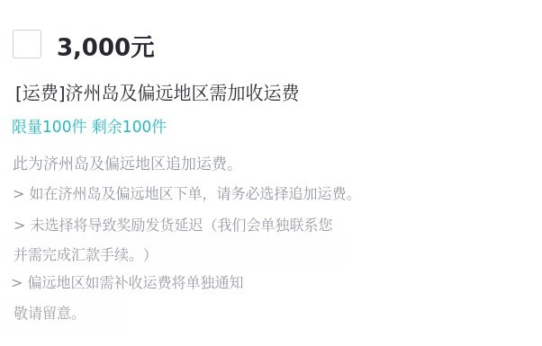 ※ 济州岛及偏远岛屿地区追加运费说明