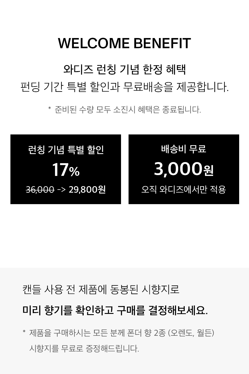 와디즈는 단순한 커머스 플랫폼이 아니라, 새로운 시도와 철학을 가진 브랜드와 이를 공감해주는 서포터가 만나는 무대라고 생각합니다. 이곳에서는 ‘가격’이나 ‘광고’보다 제품이 가진 진심과 배경이 먼저 전달되고, 서포터분들의 응원과 피드백을 바탕으로 브랜드가 성장할 수 있다는 점에서 저희는 큰 매력을 느꼈습니다.