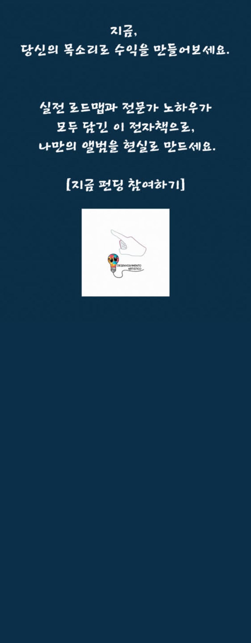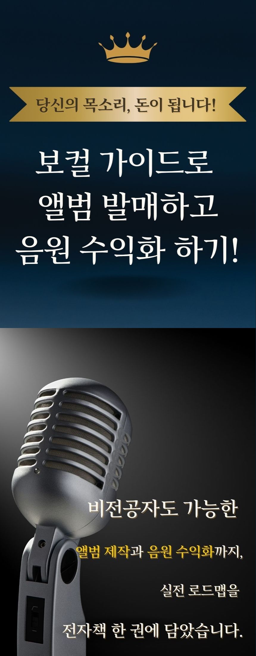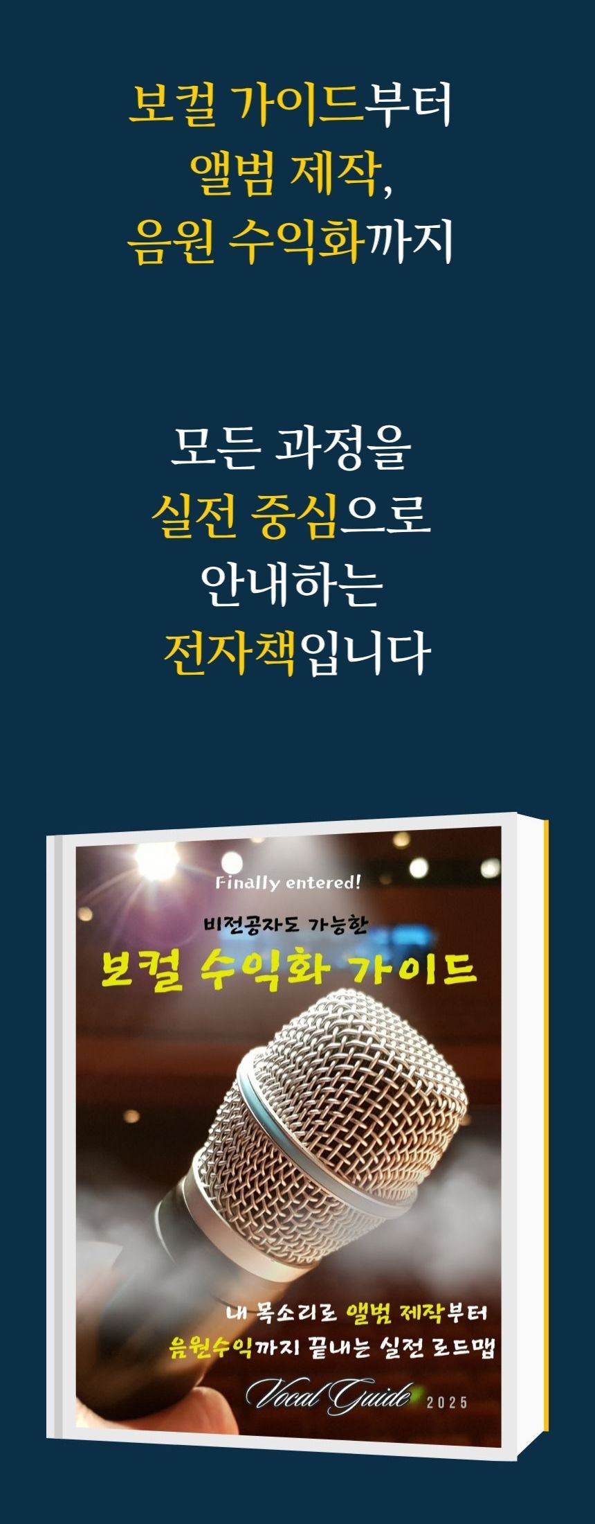 보컬 발성과 감정 표현, 녹음 노하우는 물론, 디지털 음원 등록과 저작권, 음원 유통과 수익 정산까지, 실제 현장에서 겪었던 모든 실전 노하우를 담았습니다. 누구나 자신의 목소리로 수익을 창출하고, 자신의 음악을 세상에 들려줄 수 있도록 돕기 위해 이 프로젝트를 시작했습니다.