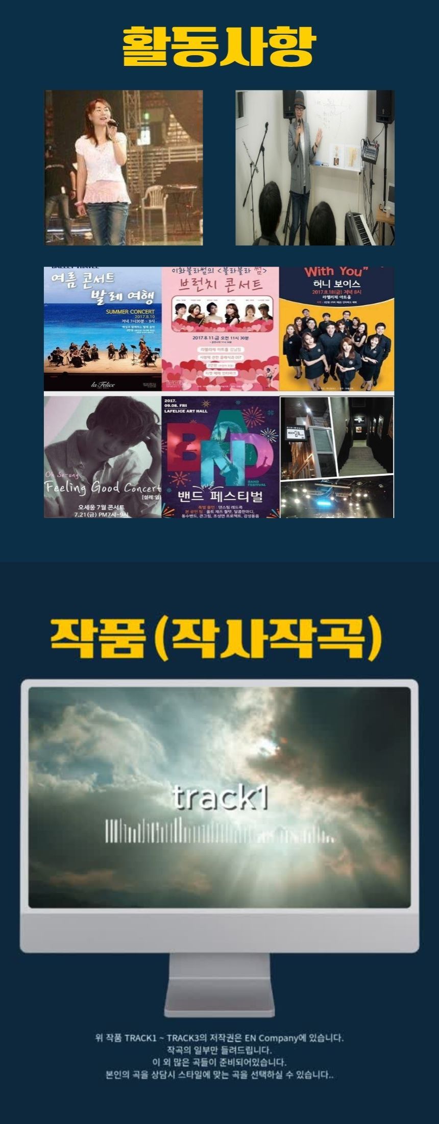 그 외 1:1컨설팅과 보컬코칭, 녹음,앨범제작은 개별로 연락드려서 진행합니다.