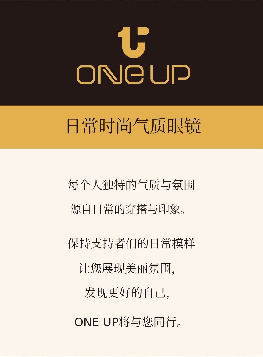 "现在用OneUp眼镜保护珍贵的双眼,每一天都时尚有型!"