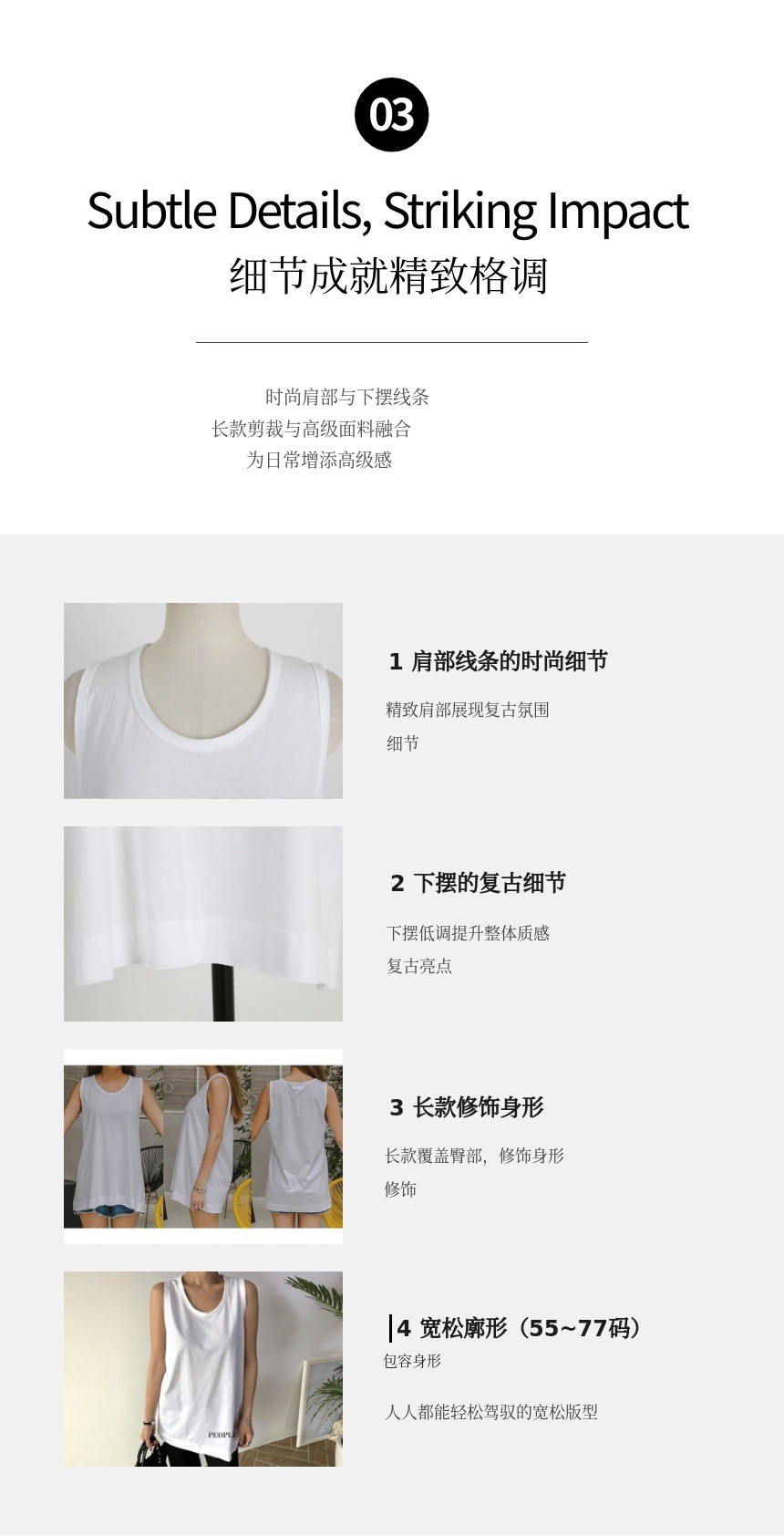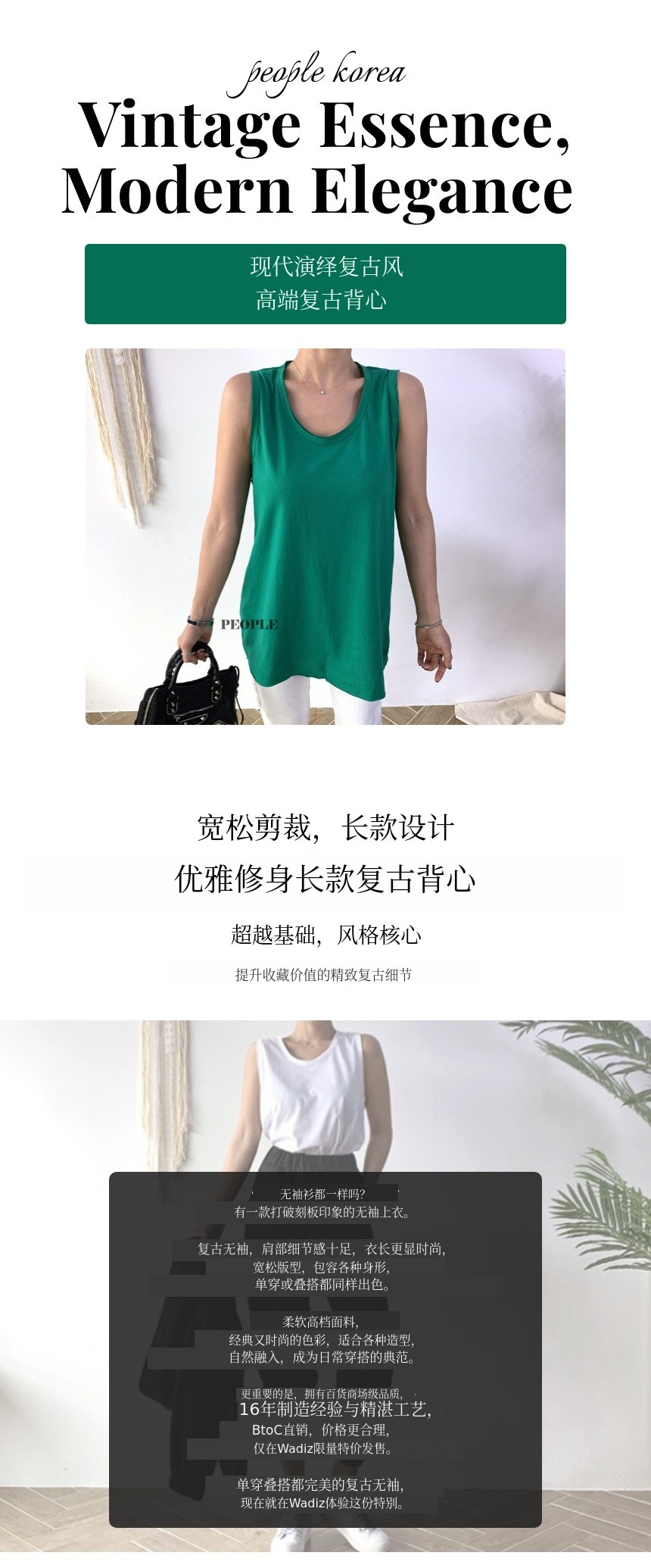 1. 👗 复古感高级背心 - 现代诠释优雅复古风格背心 2. ✨ 宽松版型与长款设计 - 自然修饰多种体型 3. 🎁 限量特价优惠 - 平台独家限量合理价格