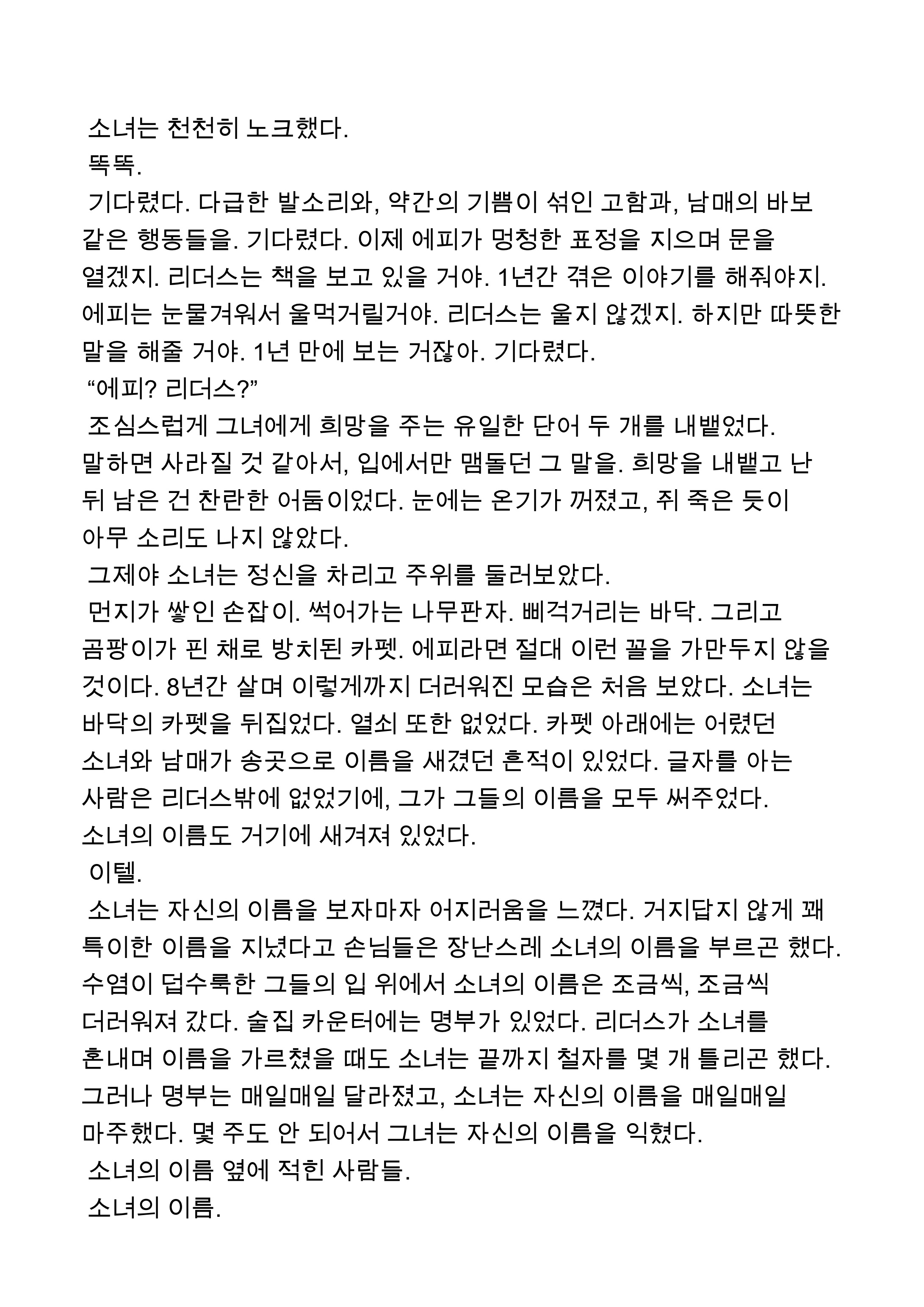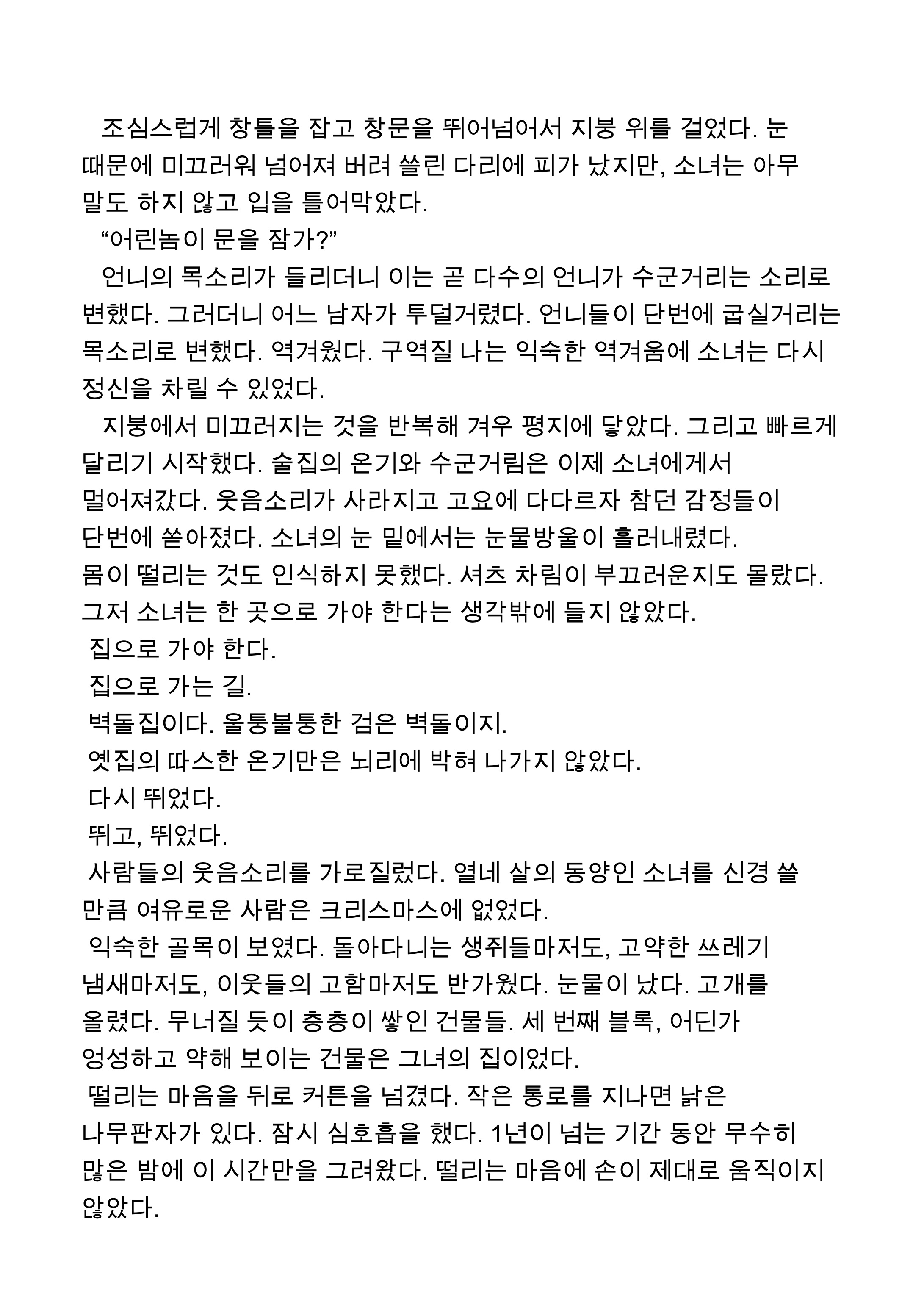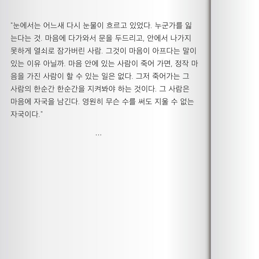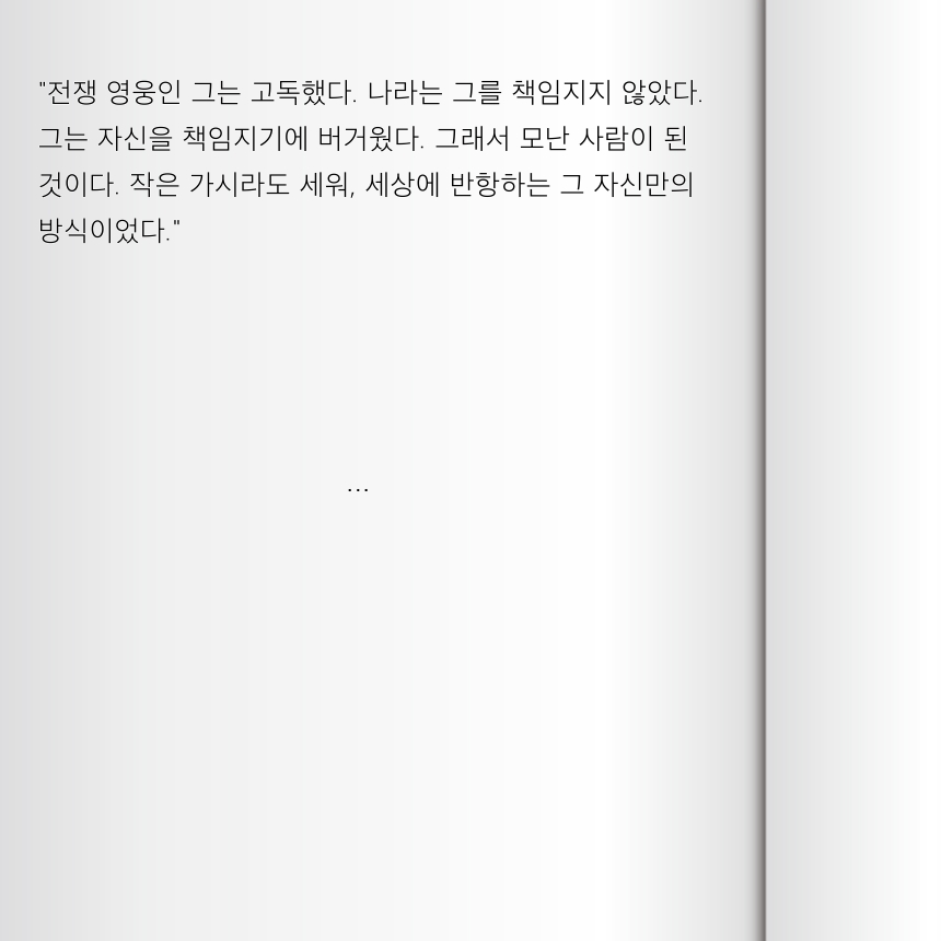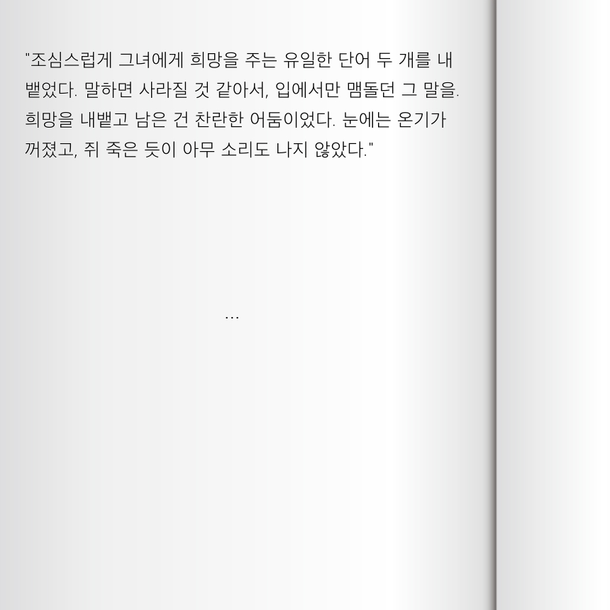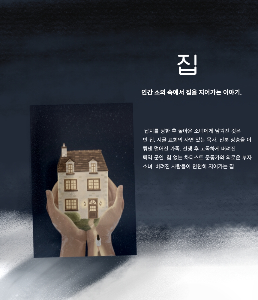 ![]() ![]() ![]() 그리고 언젠가 자신만의 집을 찾아야 했다. 누구도 흔들 수 없는, 다시는 무너지지 않을 집을. |