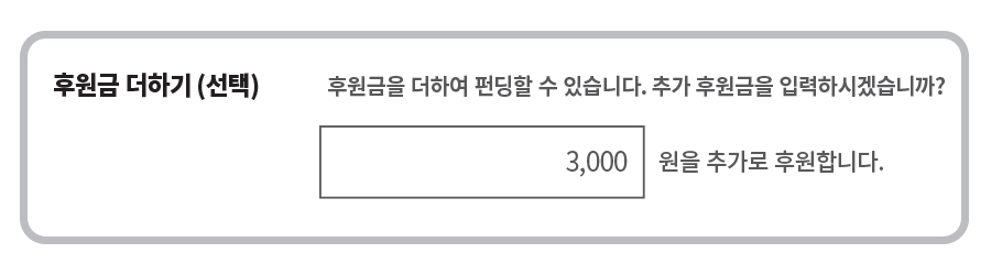 제주도 및 도서산간 지역은 3,000원의 추가 배송비가 발생합니다. 예약구매시 ‘리워드 선택 후’ ‘후원금 더하기’에 후원금을 3,000원으로 입력부탁드립니다. 미입력시 개별 연락 드리는 불편함이 발생할 수 있습니다. 꼭 후원금 추가 입력 부탁드립니다. :)
