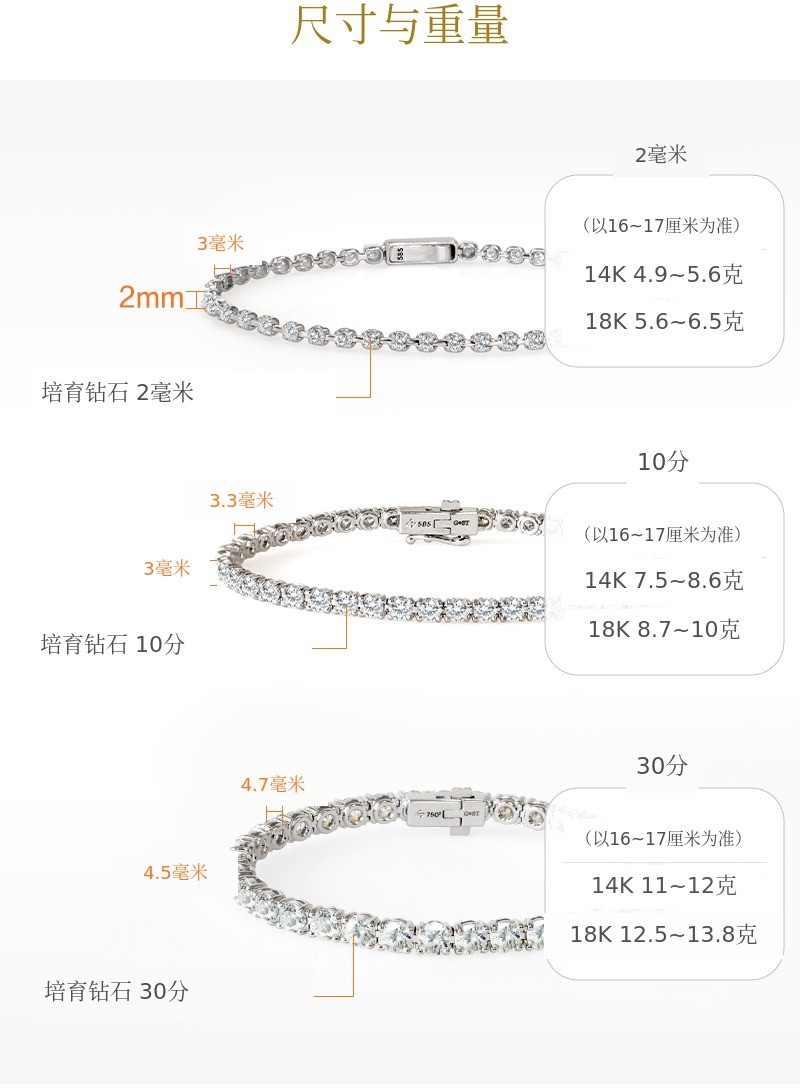 从左边开始3分>第1部>2毫米 网球手链