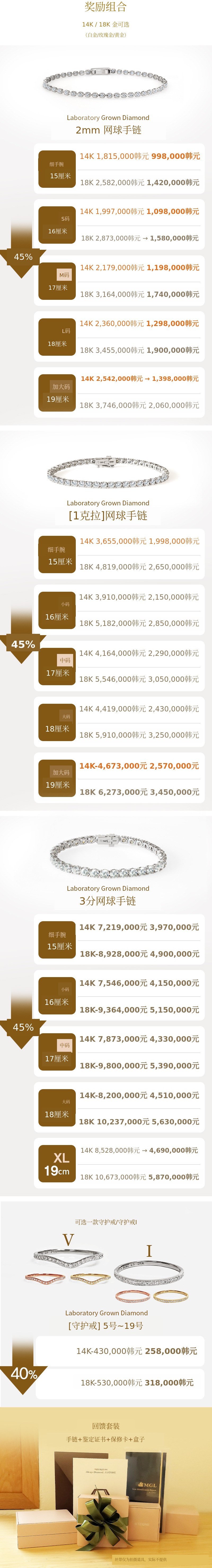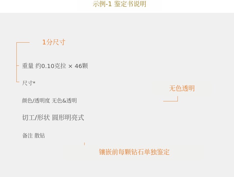 1) 只使用符合标准规格的14K/18K黄金及注明的钻石制作