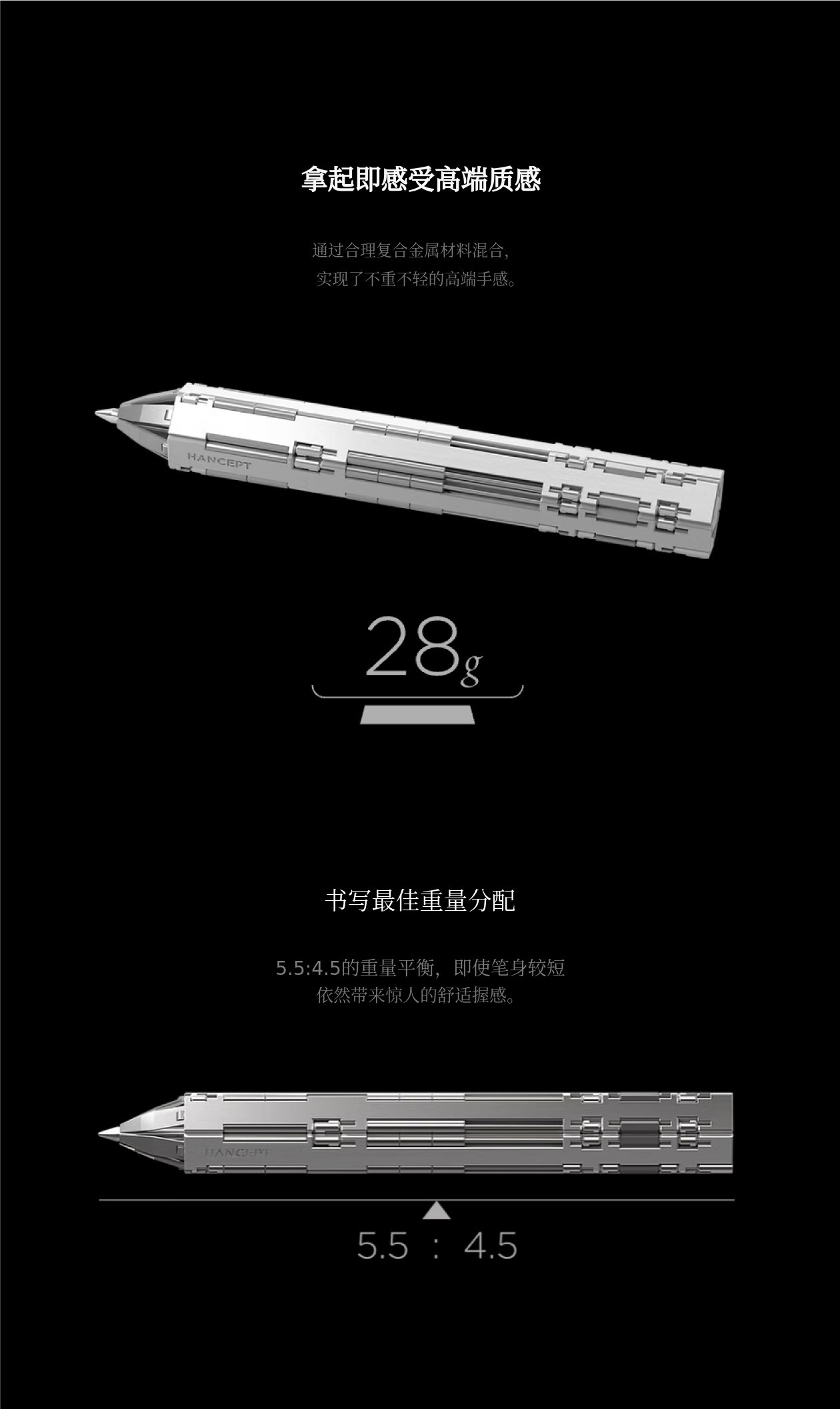Hancept Zero 采用接近黄金比例的5.5:4.5 重量分配,通过