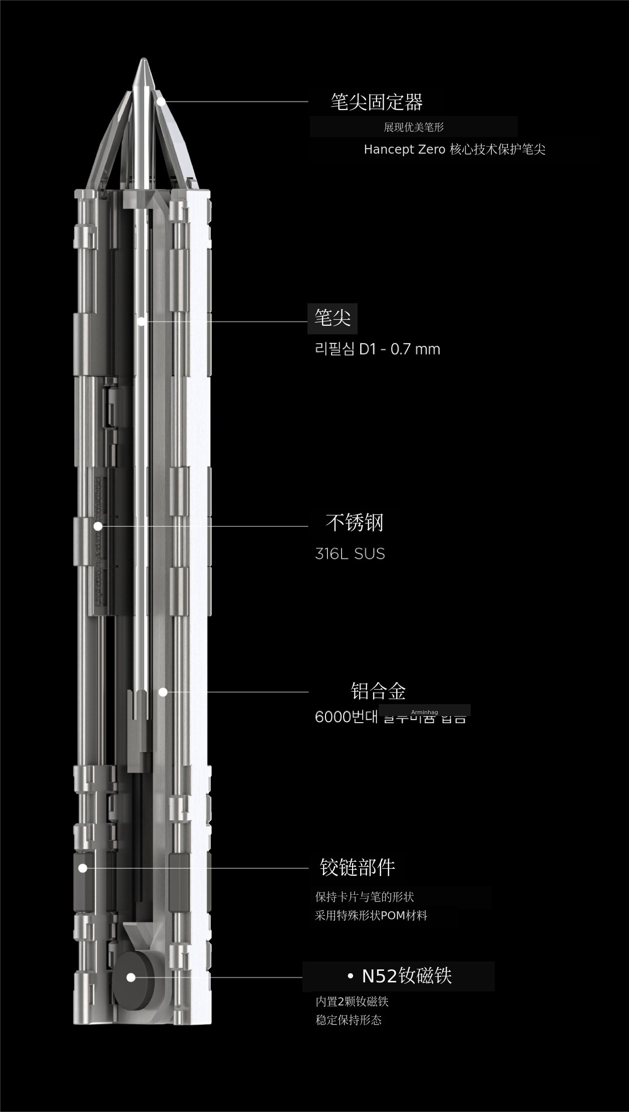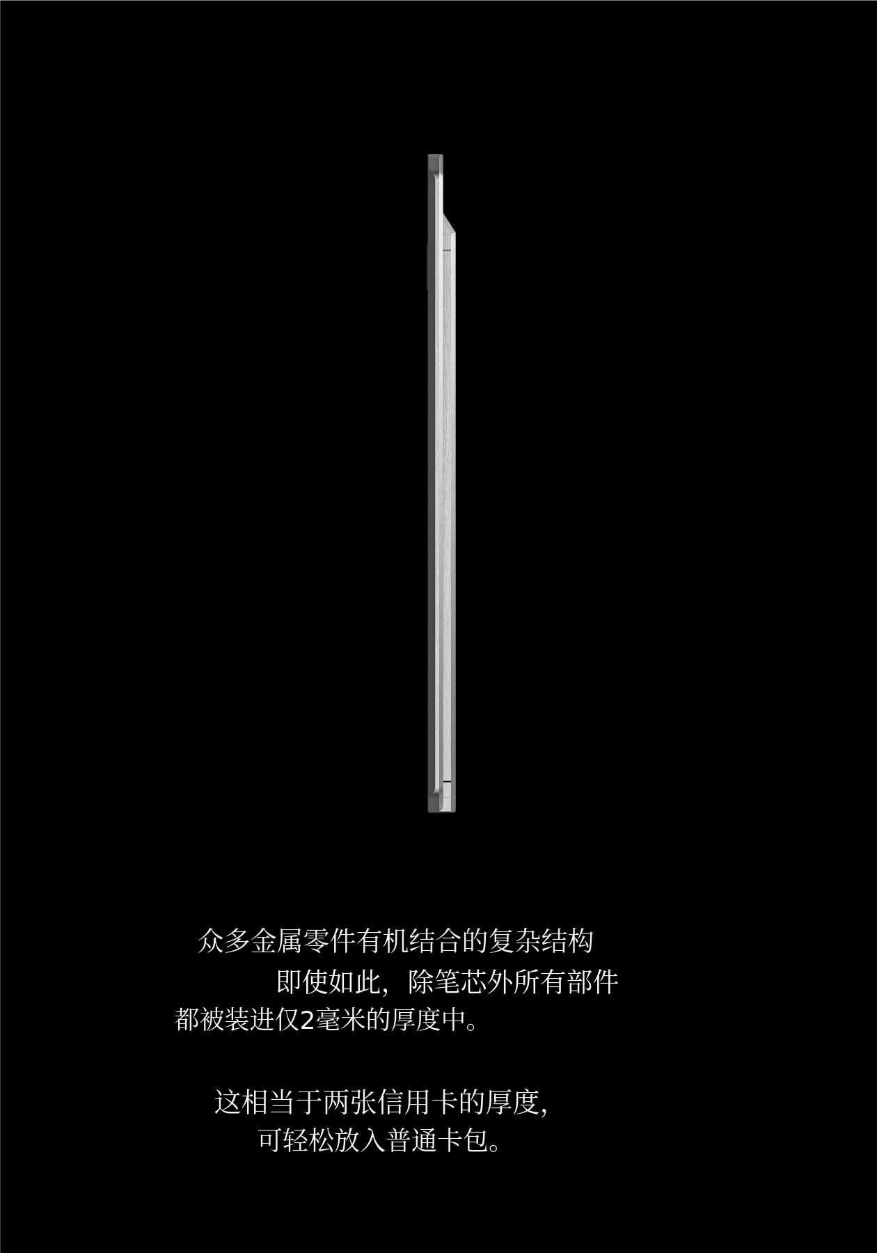 在2mm极限厚度限制下,采用金属零件实现了坚固性,