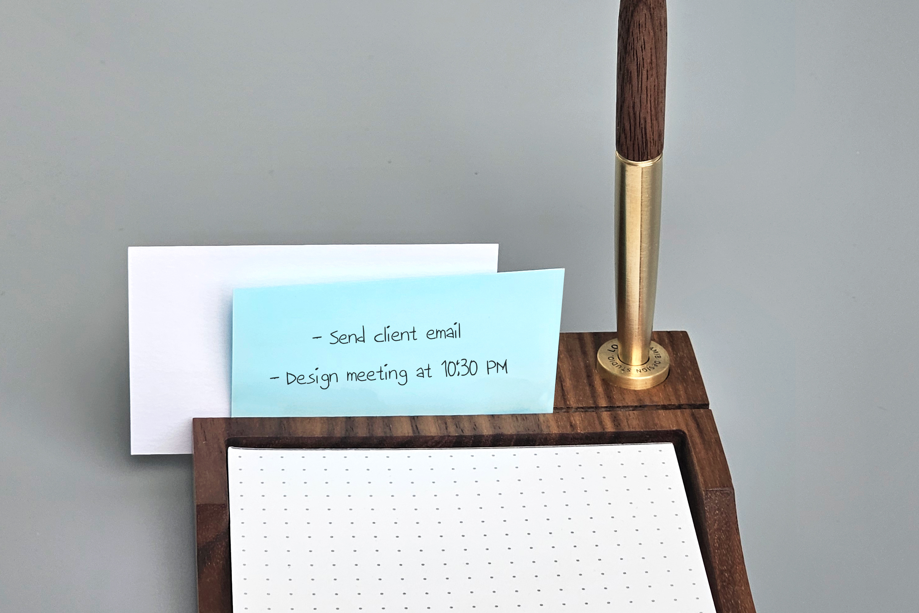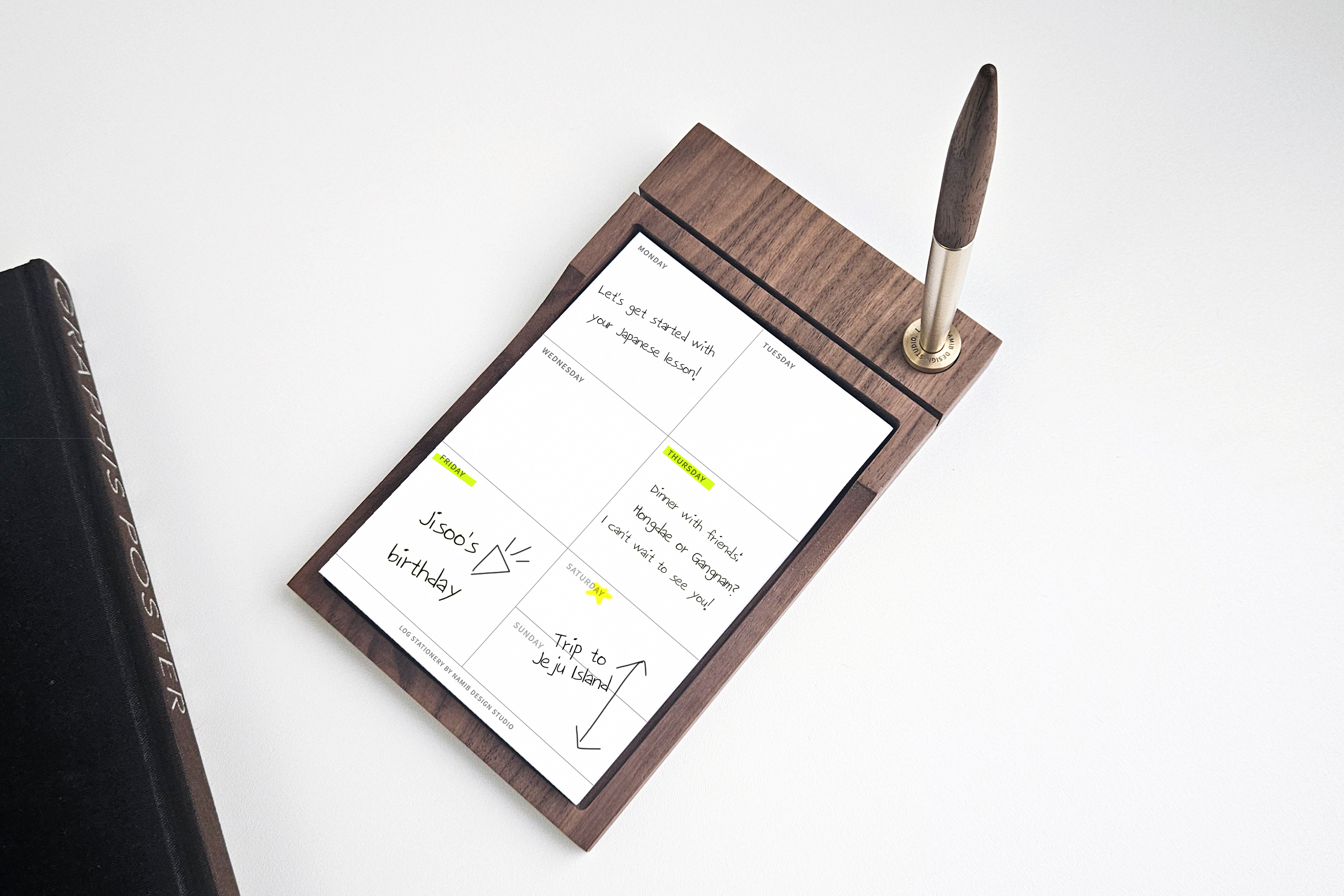 메모 패드 트레이는 접착제를 사용한 집성목이 아닌, 통원목으로 제작되었습니다.
