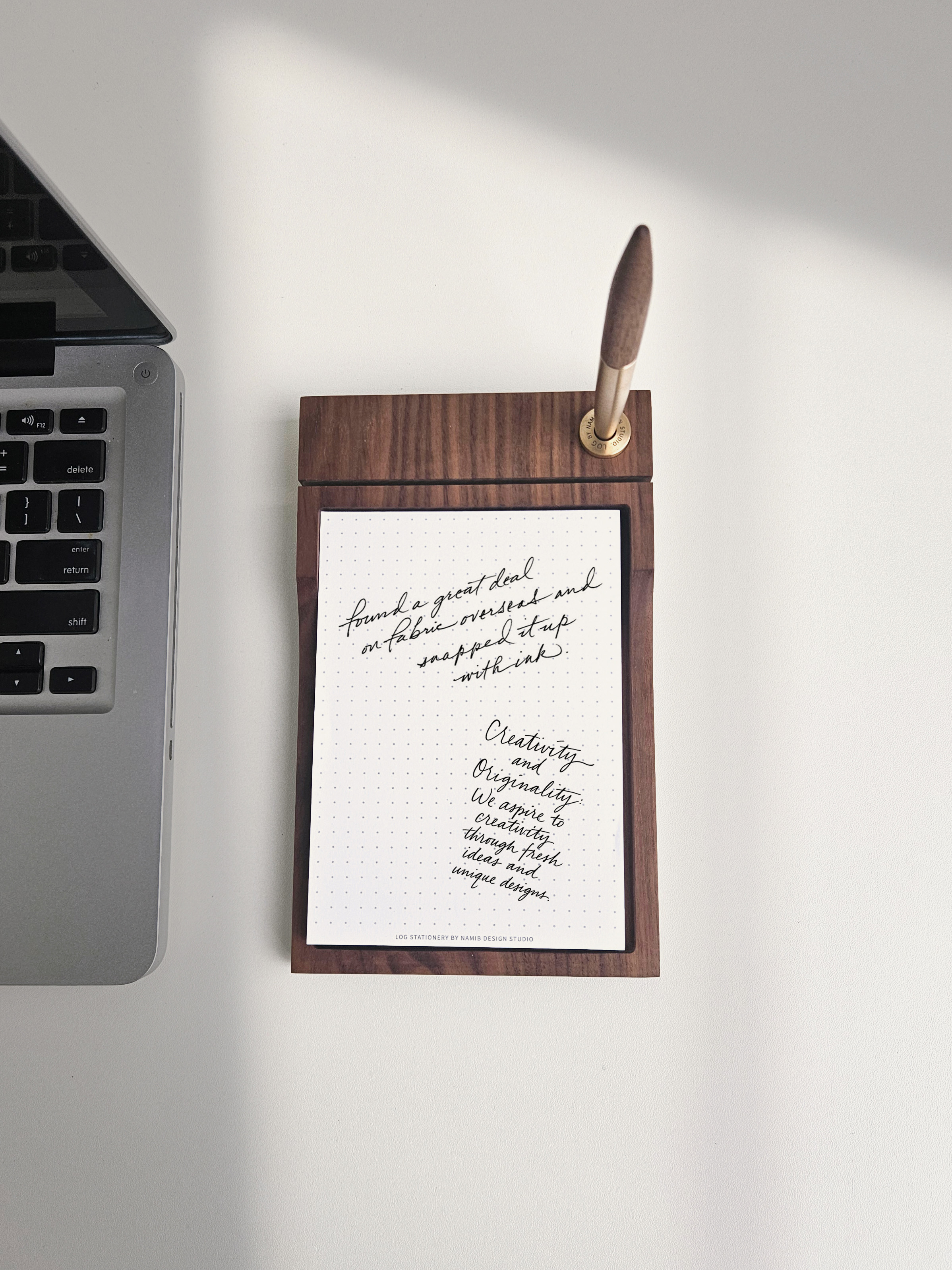 "로그스테이셔너리"는 "나미브디자인스튜디오"에서 직접 운영하는 문구 사무용품 제작 브랜드 입니다. 대표작인 우드 황동 볼펜을 시작으로, 명함 거치대, 펜 트레이 등 책상 위에서 빛나는 아이템들을 만들어왔습니다.