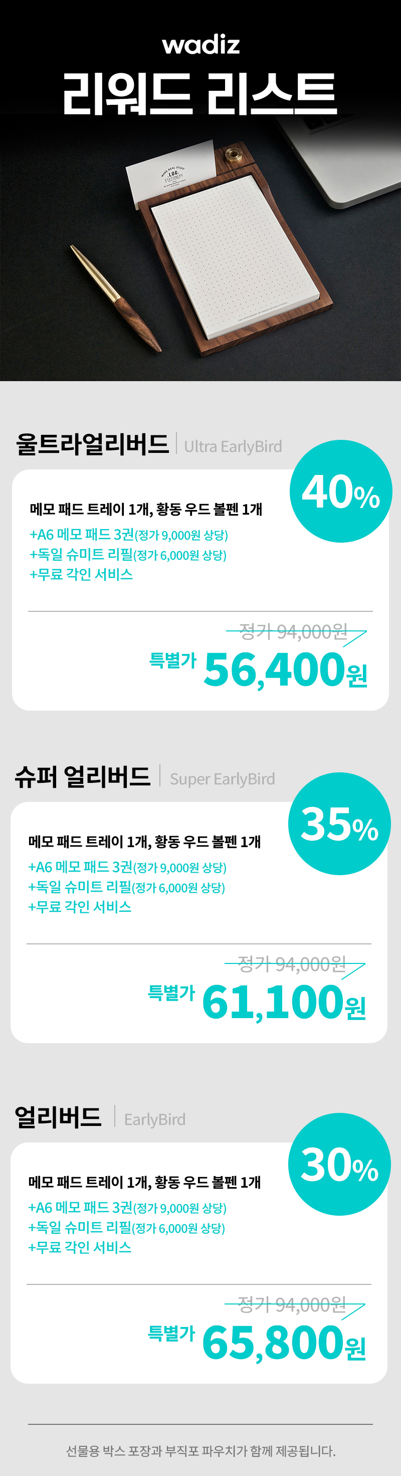 A6 사이즈로 익숙하고 편안한 필기가 가능합니다. (오직 와디즈에서만 메모패드 모두 증정)