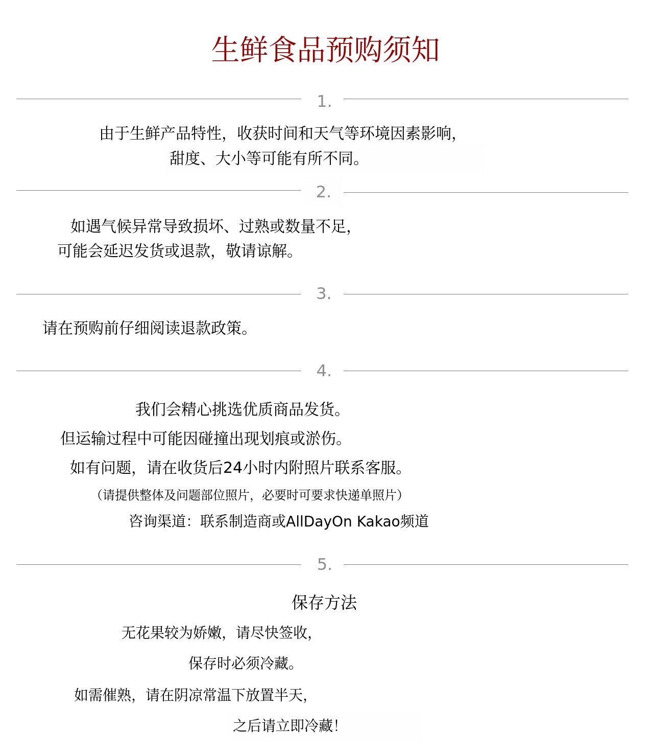 - 配送相关咨询处:联系制造商,AllDayOn Kakao 频道