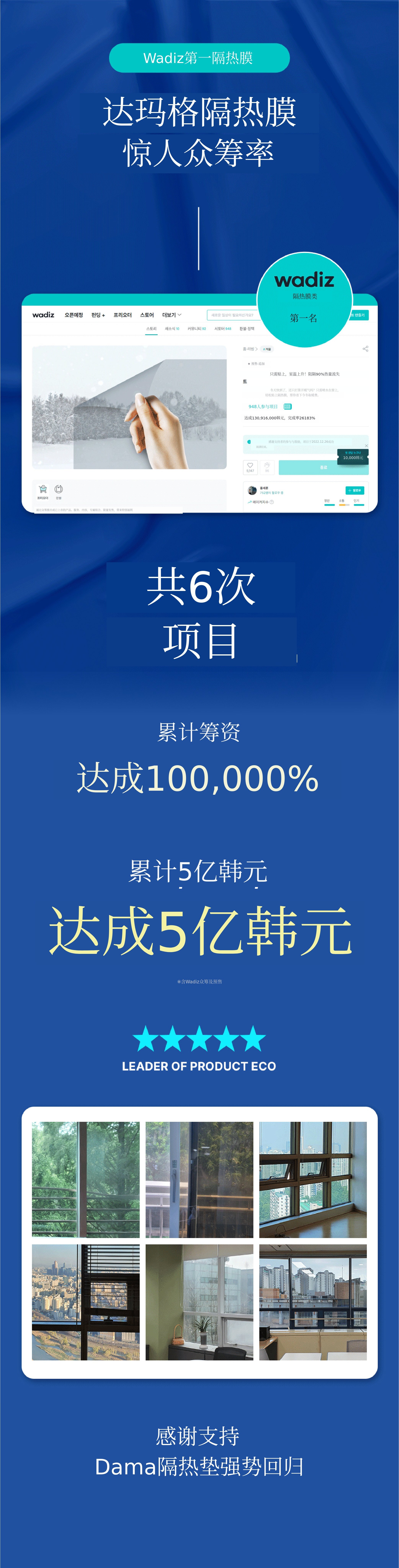 通过本次Wadiz众筹,不仅向Wadiz支持者们介绍我们的门窗隔热技术,也希望借此广泛宣传我们的技术,成为企业成长的基石。