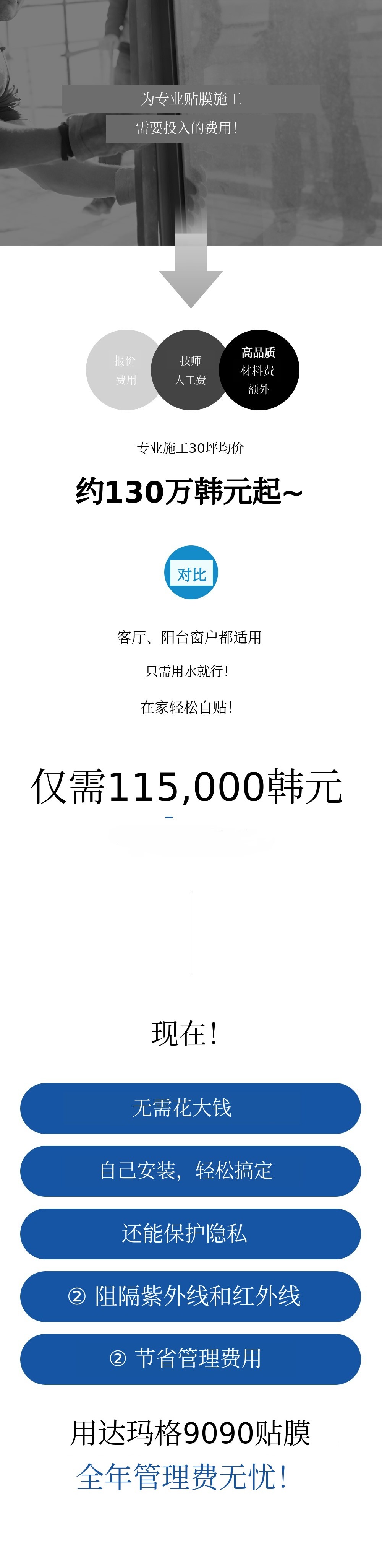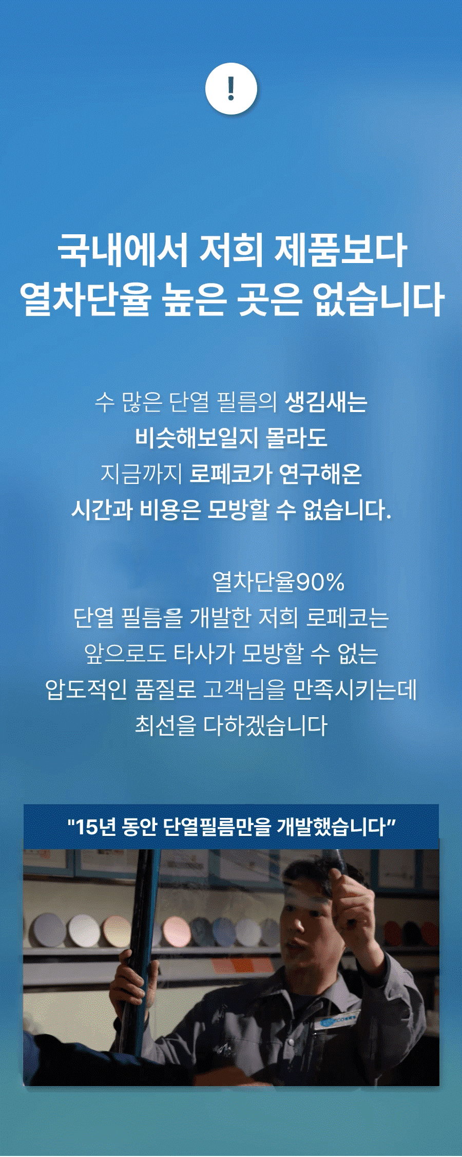 丈夫曾想到像人们涂防晒霜一样,在窗户上涂抹某种物质来阻挡紫外线和寒气,并开发了‘隔热液’。但虽然想法很好,施工却不方便,于是决定将隔热液与PVC混合制成薄膜。