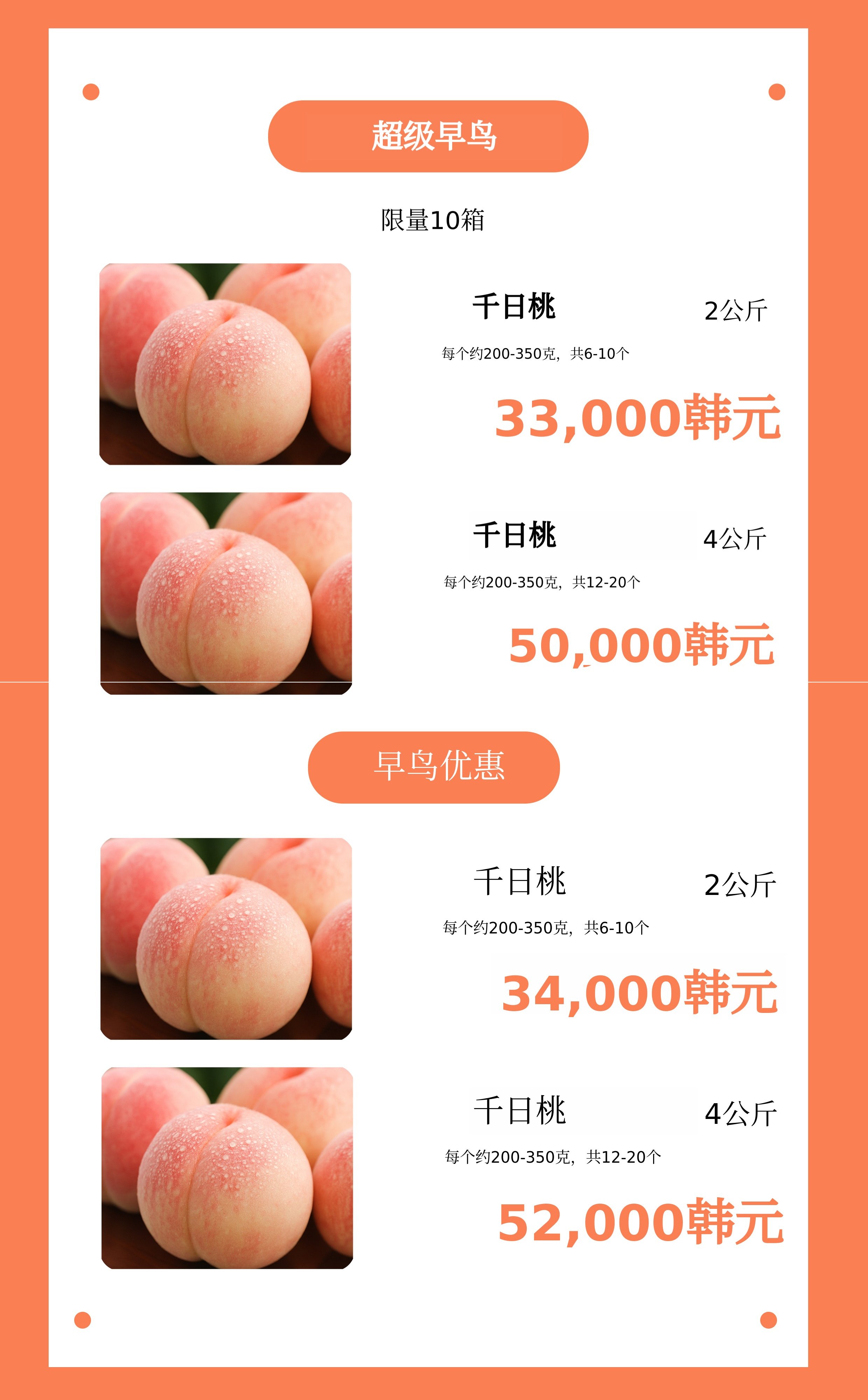 - 保存方法:收到后请立即检查桃子的状态,在干燥阴凉处后熟1~2天后尽快食用。如需保存,请单独冷藏,但不要超过一周。