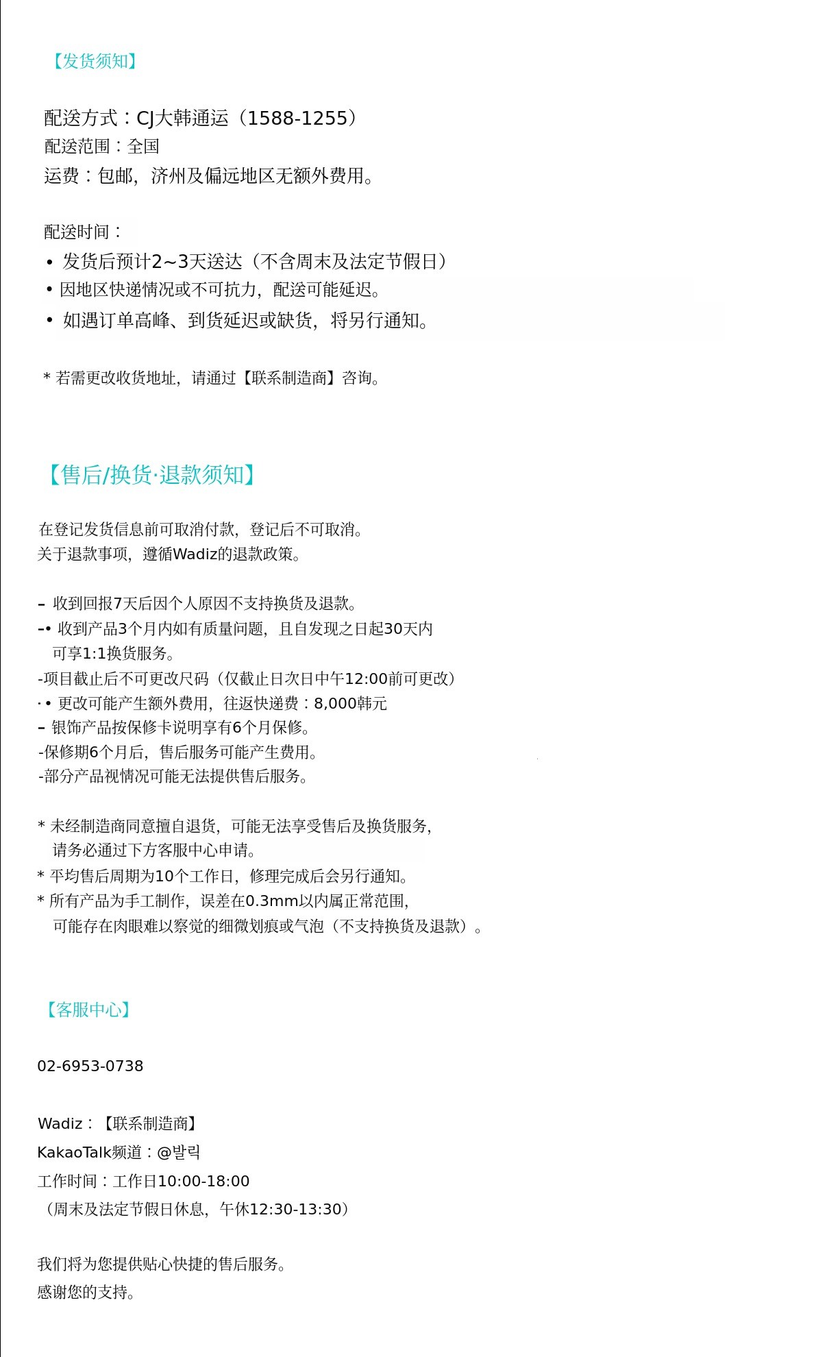 如有其他疑问,请通过[联系制造商]咨询,我们会尽快回复您 :)