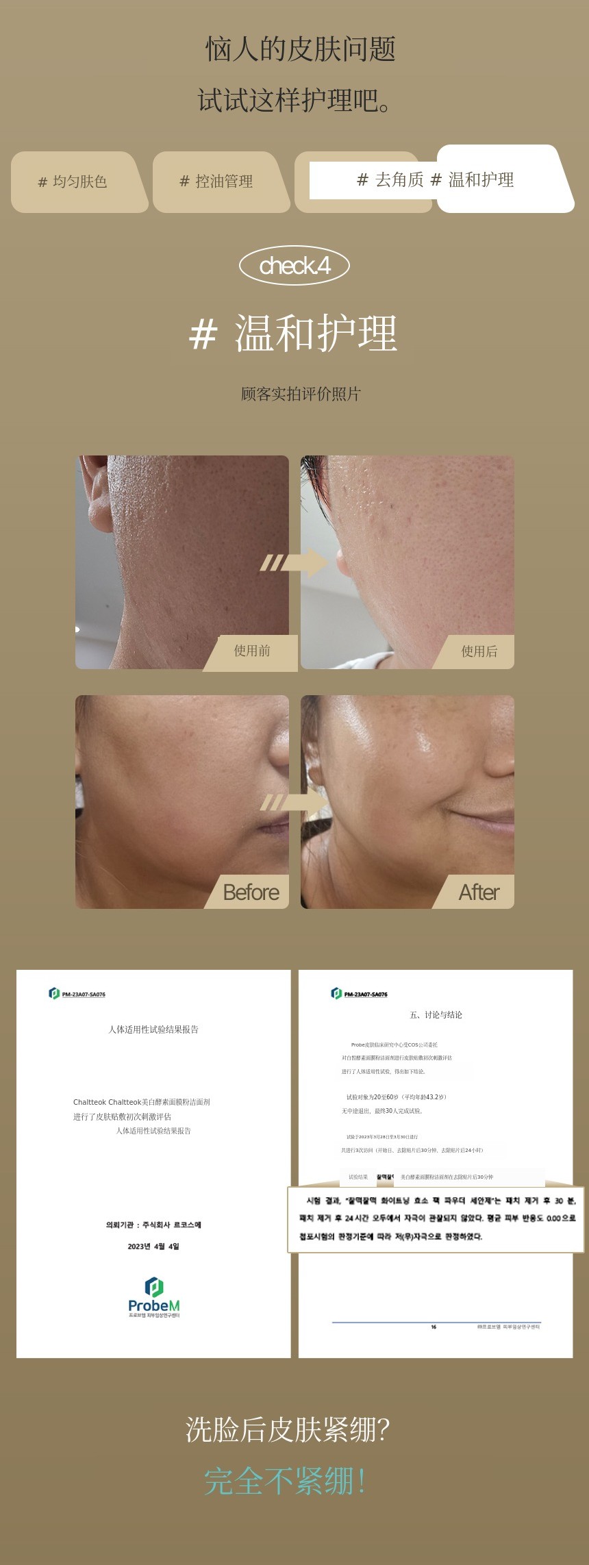 已完成纯素认证、临时肤色临床测试、低(无)刺激测试,